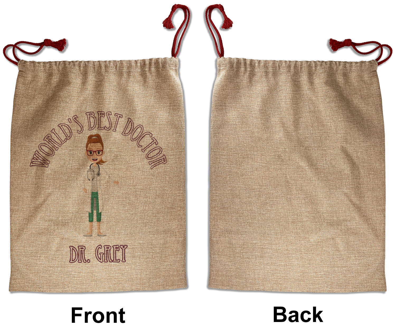Our Santa sacks print your design on the burlap material giving it a nice rustic, natural design! The burlap material is also machine washable and wrinkle-free, so feel free to fold and store out Santa bags until the next time you need it! Secure your gifts with our red accent drawstring ties at the top of the sack so the mystery of your gift stays a surprise until Christmas day. We offer two types of printing- one side partial print or double-sided partial printing. Design and personalize your own Santa sack in time for the holidays!