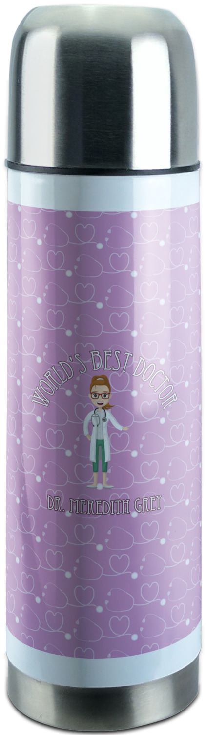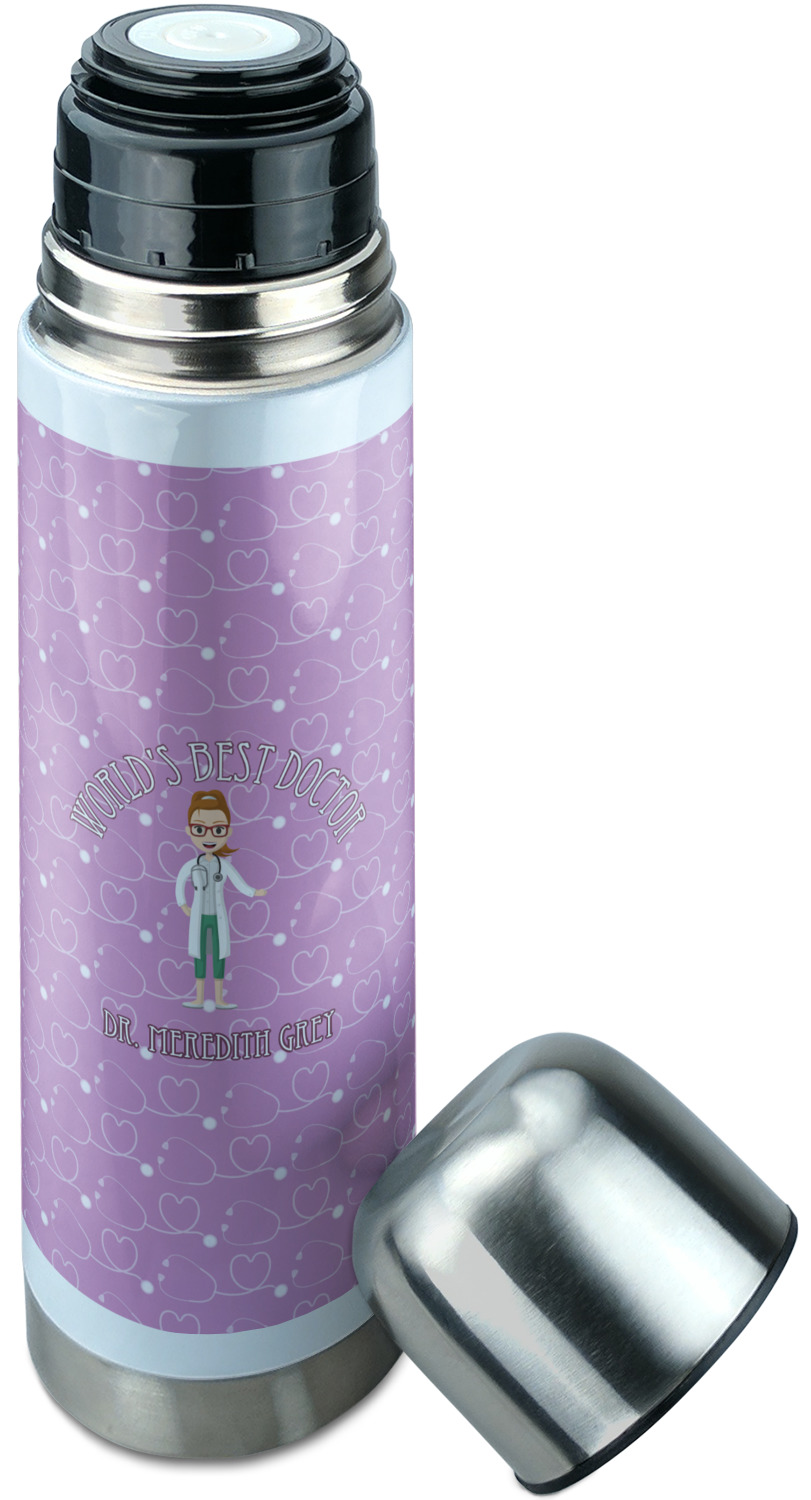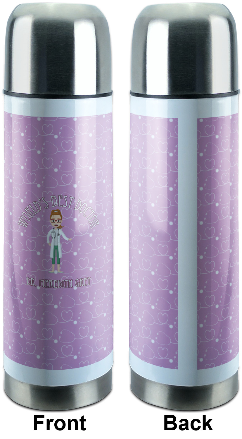 Transport your iced and heated drinks in style with our stainless steel thermos! This effective, custom thermos insulates your beverages for hours, while displaying a creative, personalized design completely of your choice!