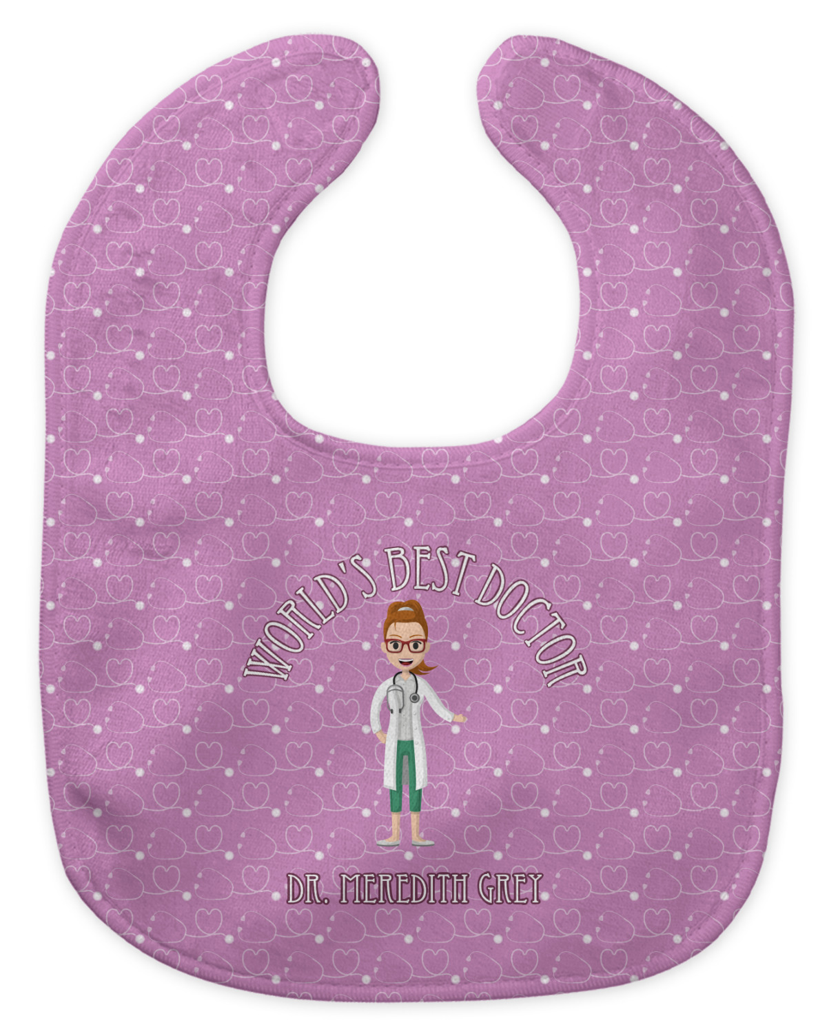 Made of soft polyester, each customizable bib hugs comfortably around the neck to catch every drip and drool. Each bib design is printed with baby-safe ink and finished with a secure stitch pattern and velcro clasp. We carry two customizable bib styles -Microfiber Velour and Jersey Knit.