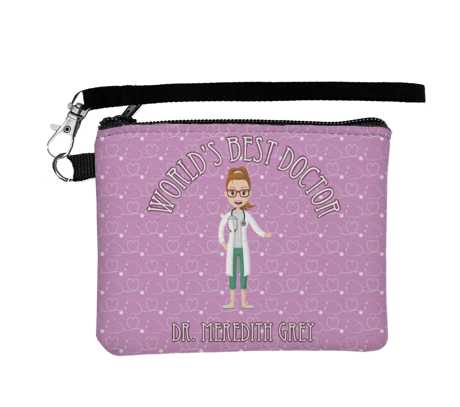 The design features an avatar doctor that is wearing a labcoat. You can easily change her hair color and skin tone. You can even swap her out for a male doctor! The background has a subtle pattern made out of stethescopes and is a fun purple. You personalization goes on top and below the avatar.