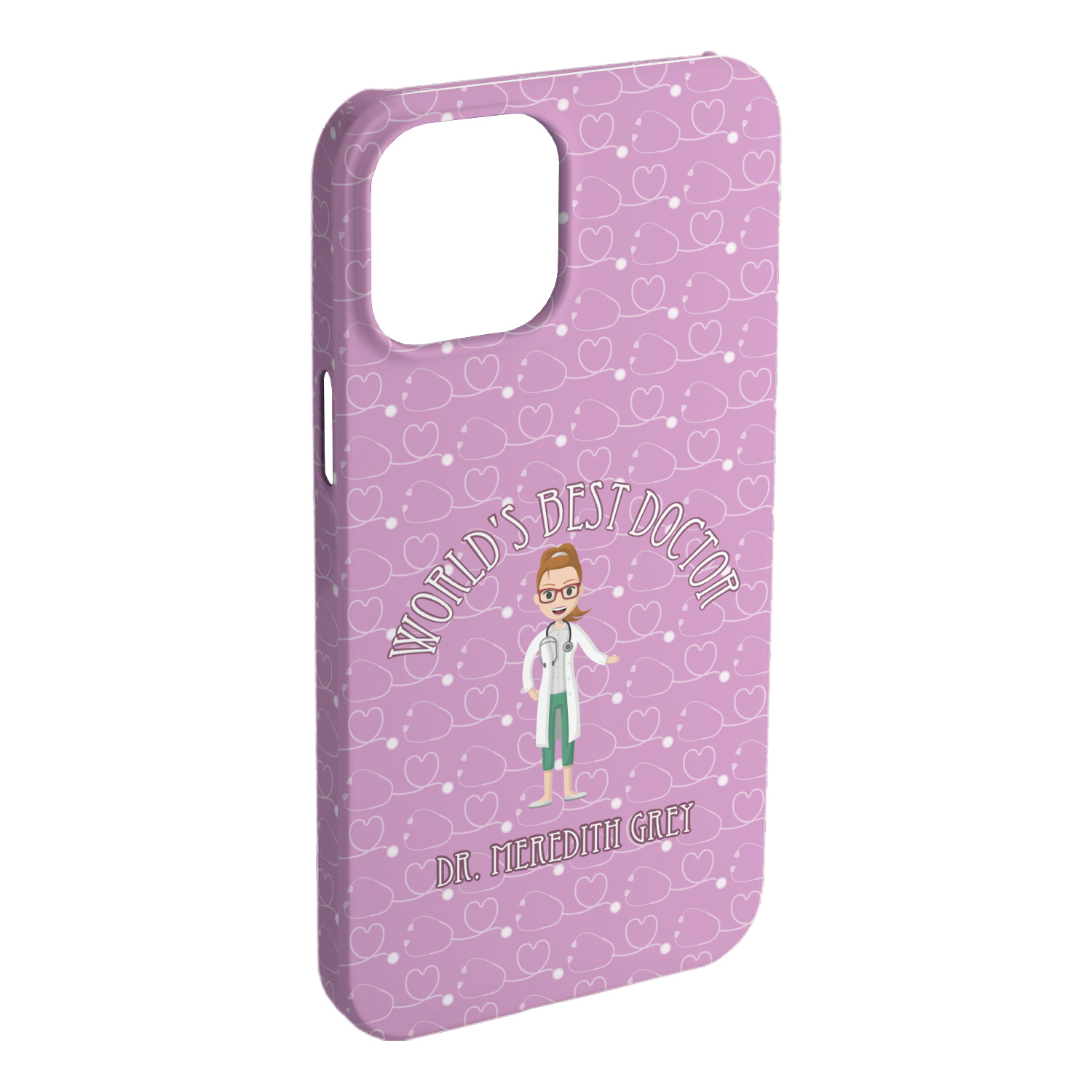 The design features an avatar doctor that is wearing a labcoat. You can easily change her hair color and skin tone. You can even swap her out for a male doctor! The background has a subtle pattern made out of stethescopes and is a fun purple. You personalization goes on top and below the avatar.