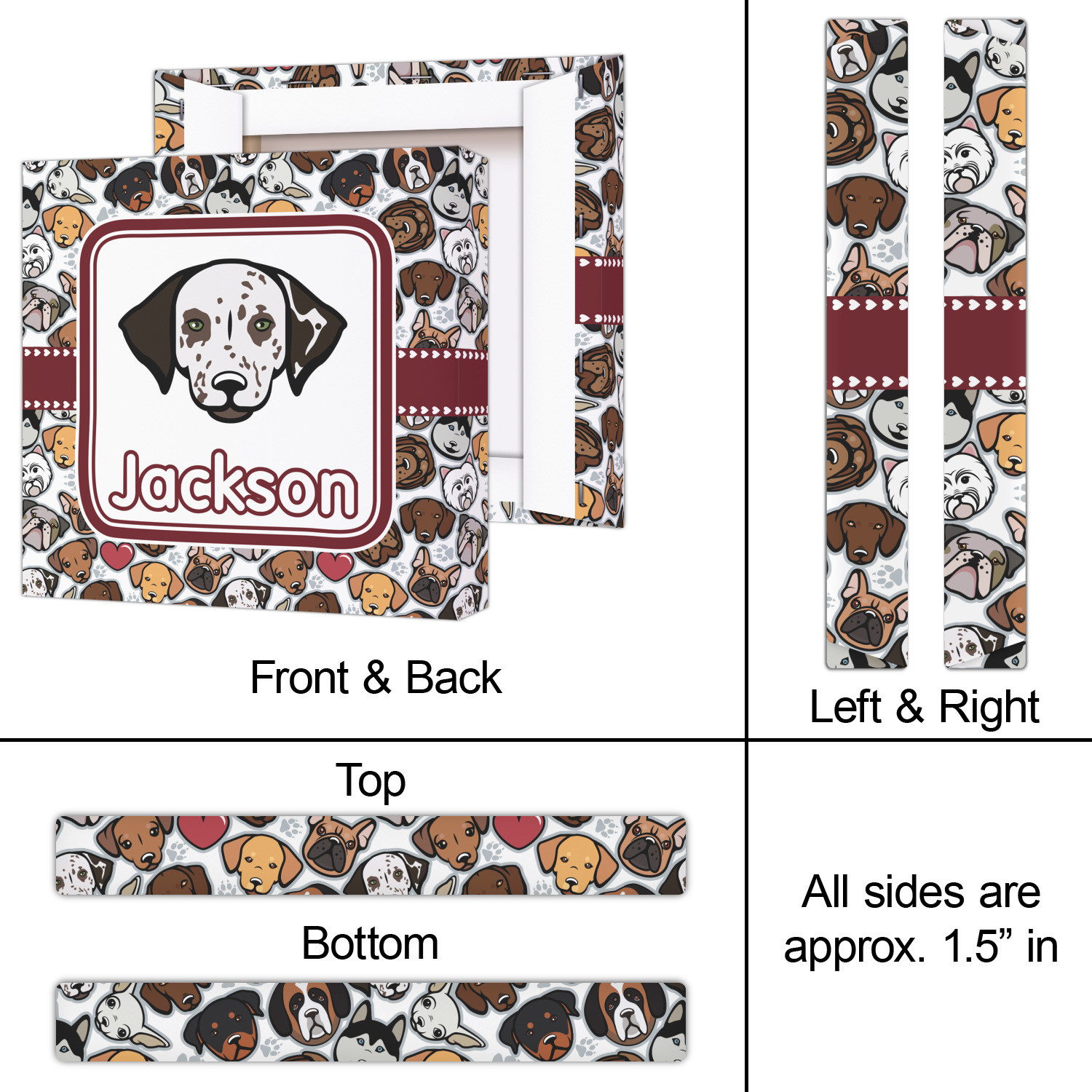 We have all 12 dogs in our design elements library, so you can switch out the dog face that works for you and customize the design to suit your needs.