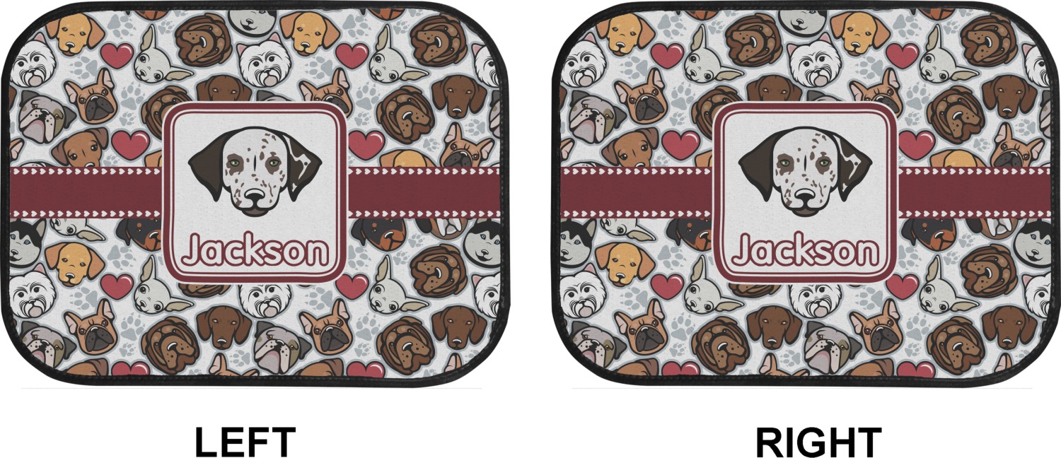 We craft our auto floor mats mats from polyester, apply a black finish to the edges, and lined at the bottom to prevent slippage. These mats protect your floors from grass, mud, and any accidental spills. We display your personalized design on the front face of each mat. The sizes of these car floor liners are standardized to provide a versatile fit for all vehicles. The front rows car mats measure at 17 by 26.5 inches, while the back rows measure at 17 by 13 inches. We sell three packages of car floor mats. You can purchase a pair of front row car mats, a pair of back row car mats, or a set of front row and back row car mats. To make an informed purchase, we recommend measuring the surface area of your car floors.