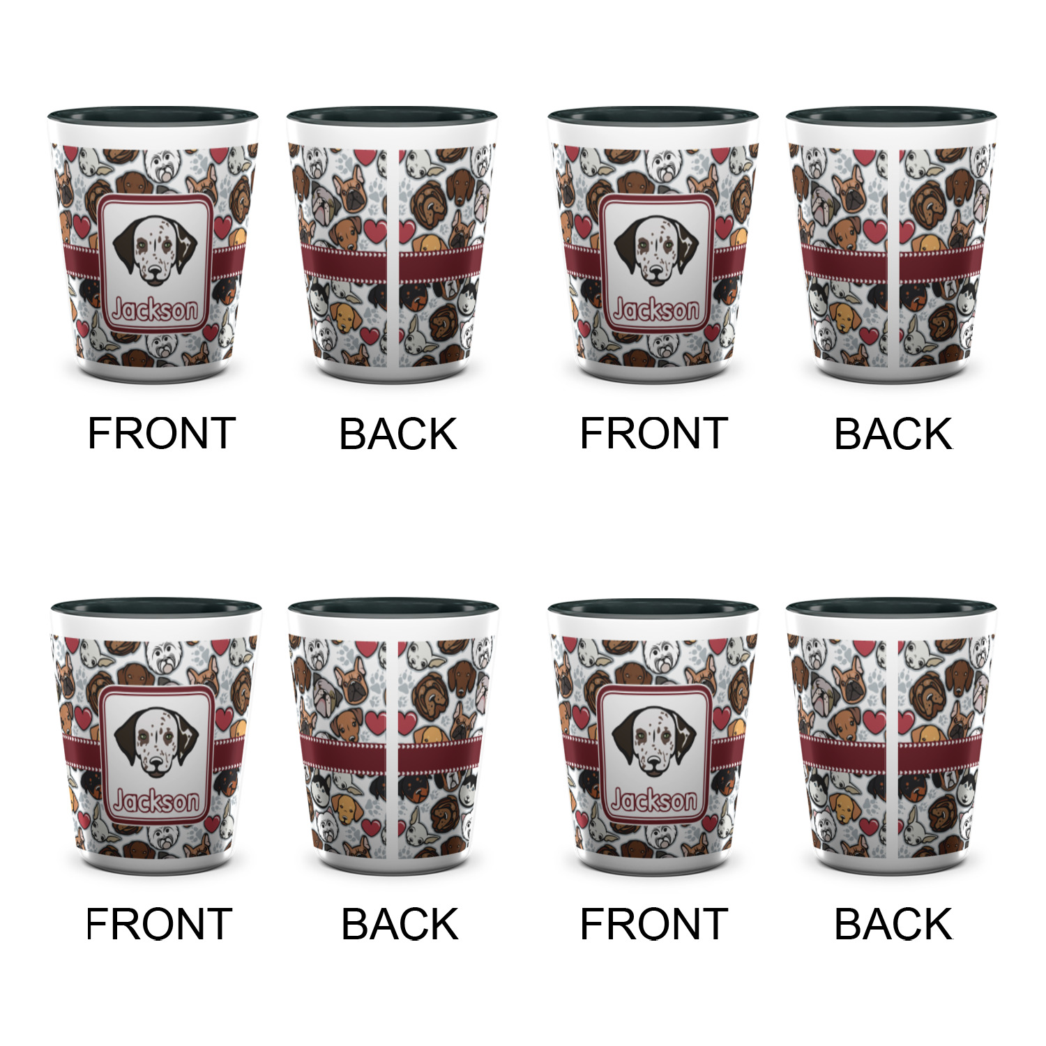 We have all 12 dogs in our design elements library, so you can switch out the dog face that works for you and customize the design to suit your needs.