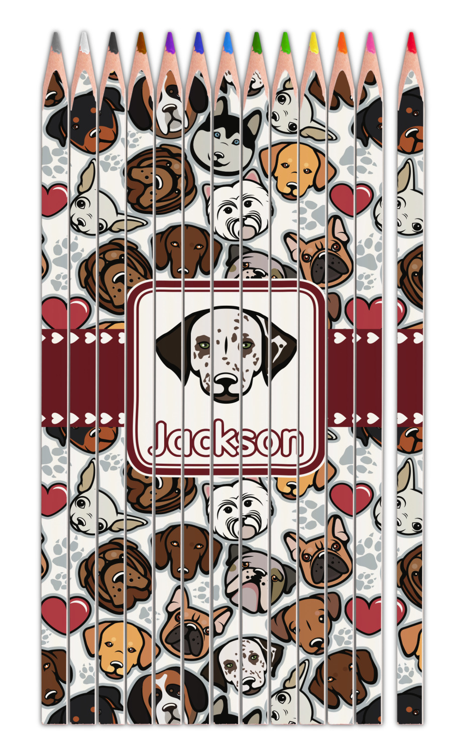 We have all 12 dogs in our design elements library, so you can switch out the dog face that works for you and customize the design to suit your needs.