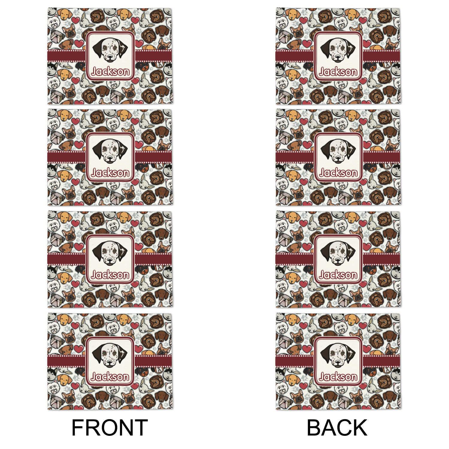 We have all 12 dogs in our design elements library, so you can switch out the dog face that works for you and customize the design to suit your needs.
