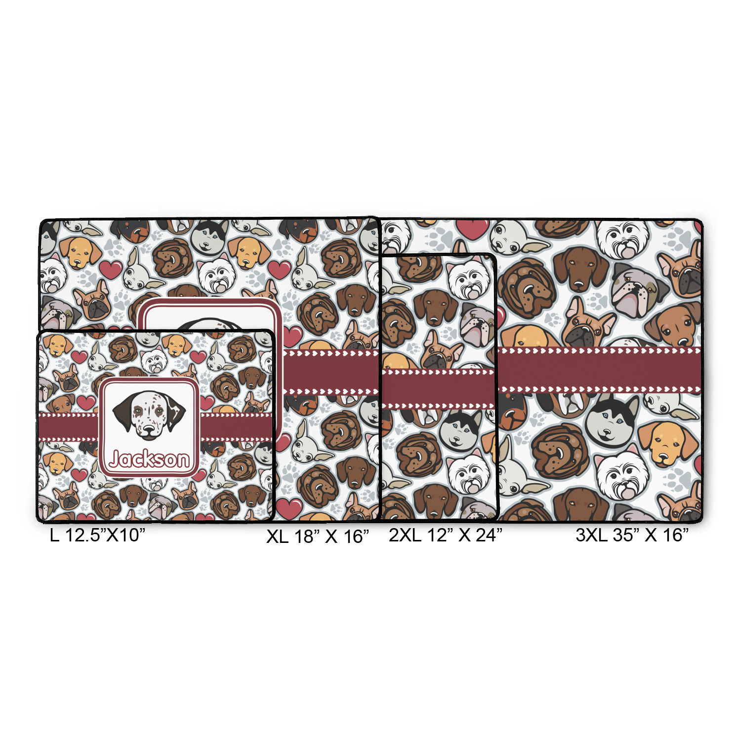 We have all 12 dogs in our design elements library, so you can switch out the dog face that works for you and customize the design to suit your needs.