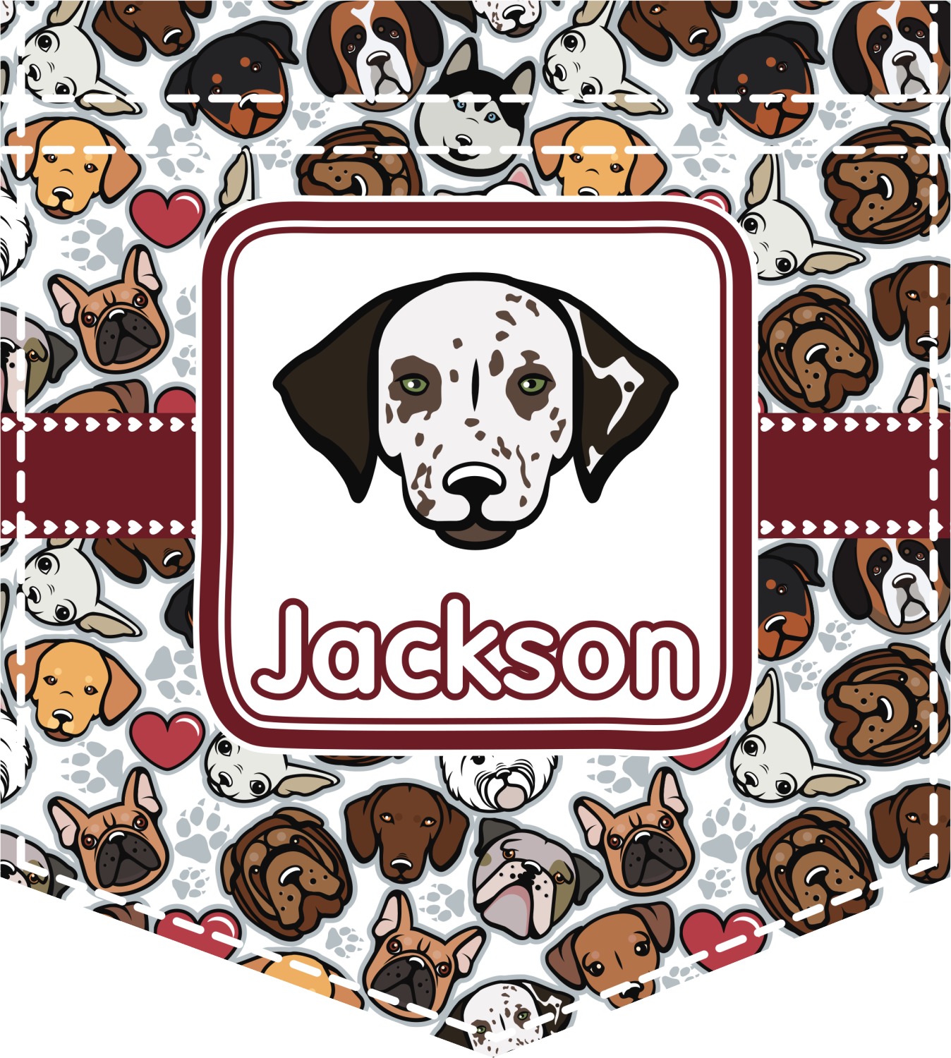 We have all 12 dogs in our design elements library, so you can switch out the dog face that works for you and customize the design to suit your needs.