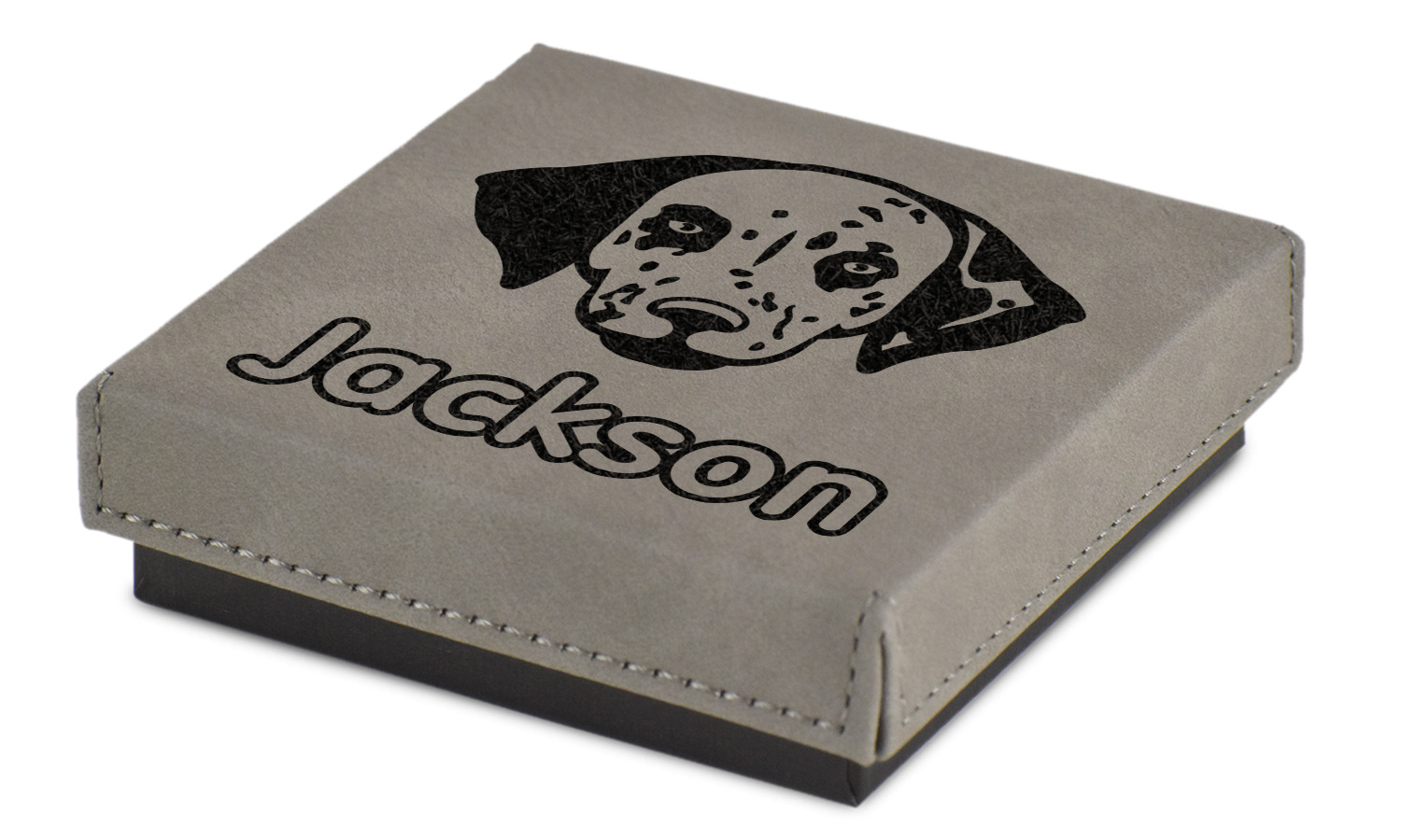 This jewelry gift box measures 3.5 inches long by 3.5 inches wide, and 1 inch deep. The box fits different sized jewelry items such as bracelets, necklaces, watches, earrings, rings and more. Engraved with a laser this high quality paper board and faux leather jewelry gift box is unique and makes any gift stand out.