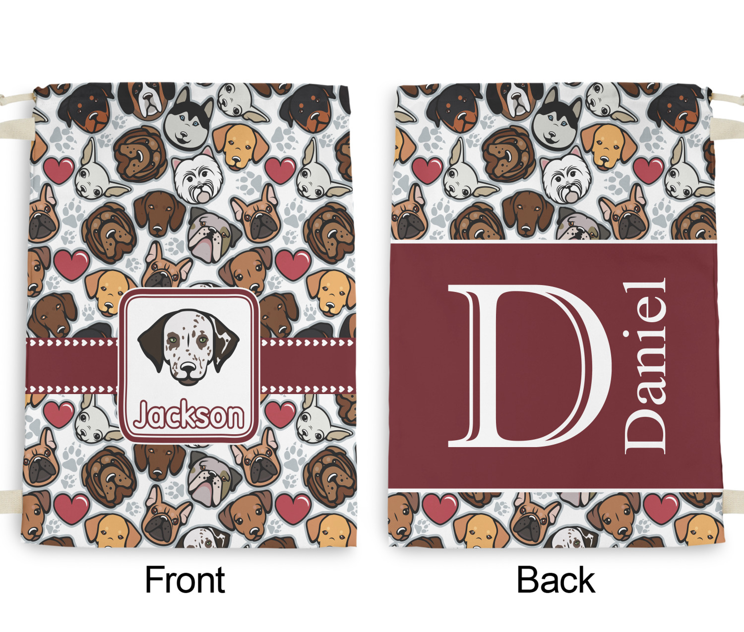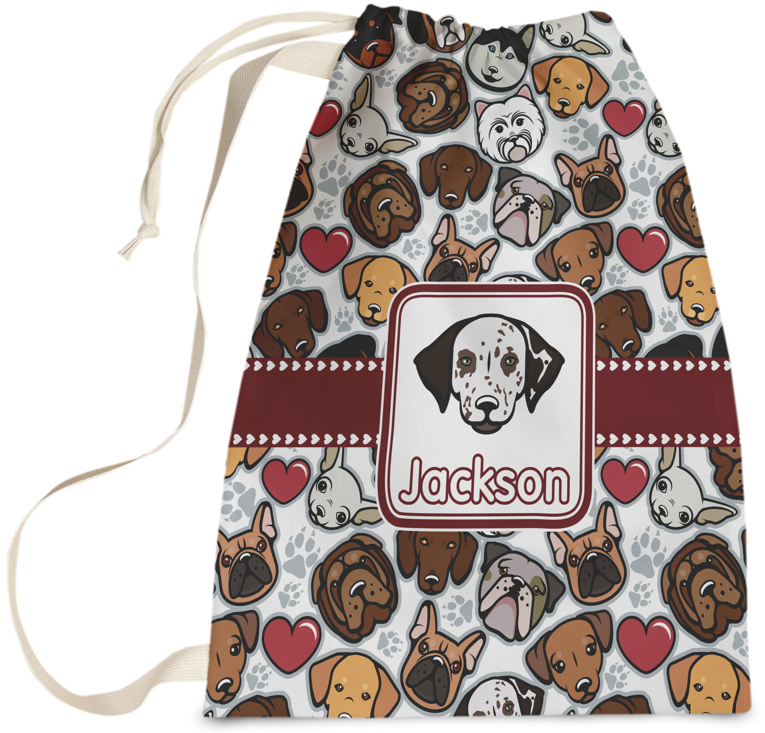 Carry your laundry in style with these customized laundry bags. Available in two sizes, featuring a natural colored woven strap and a cinch cord, these bags hold a lot of clothes or anything else you want to fit in them.