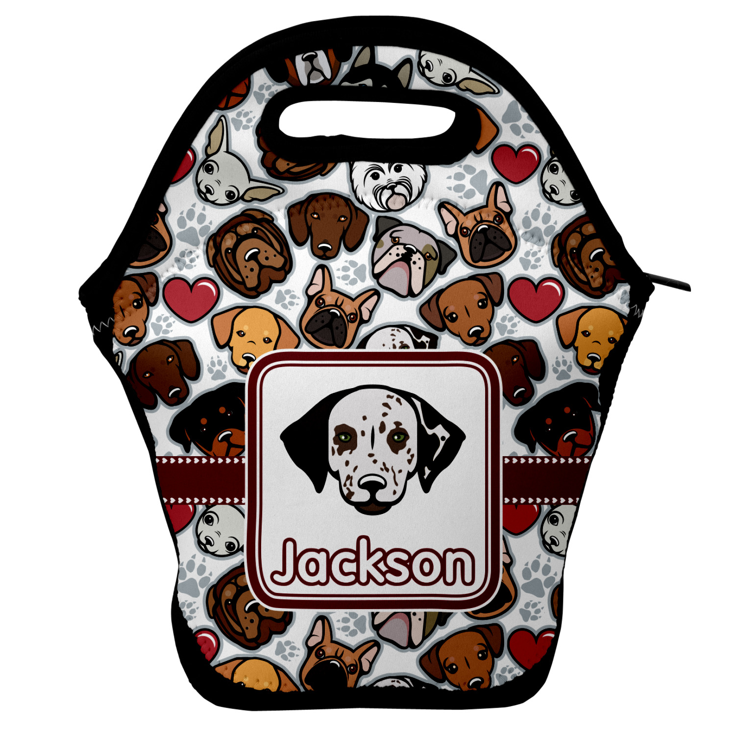 Our personalized lunch bags are made from a strong neoprene, and secure with a zipper closure that lines the top of the bag.The edges of the neoprene are sewn together with a heavy duty stitch, adding to the durability of the bag. The is accompanied by a reinforced handle at its top, for the easy transport of your lunch. We display your personalization across both the front and back of this neoprene lunch bag, while the remaining sides are a sleek black in color. Each bag measures at 13.5 inches tall, and 11.5 inches wide.