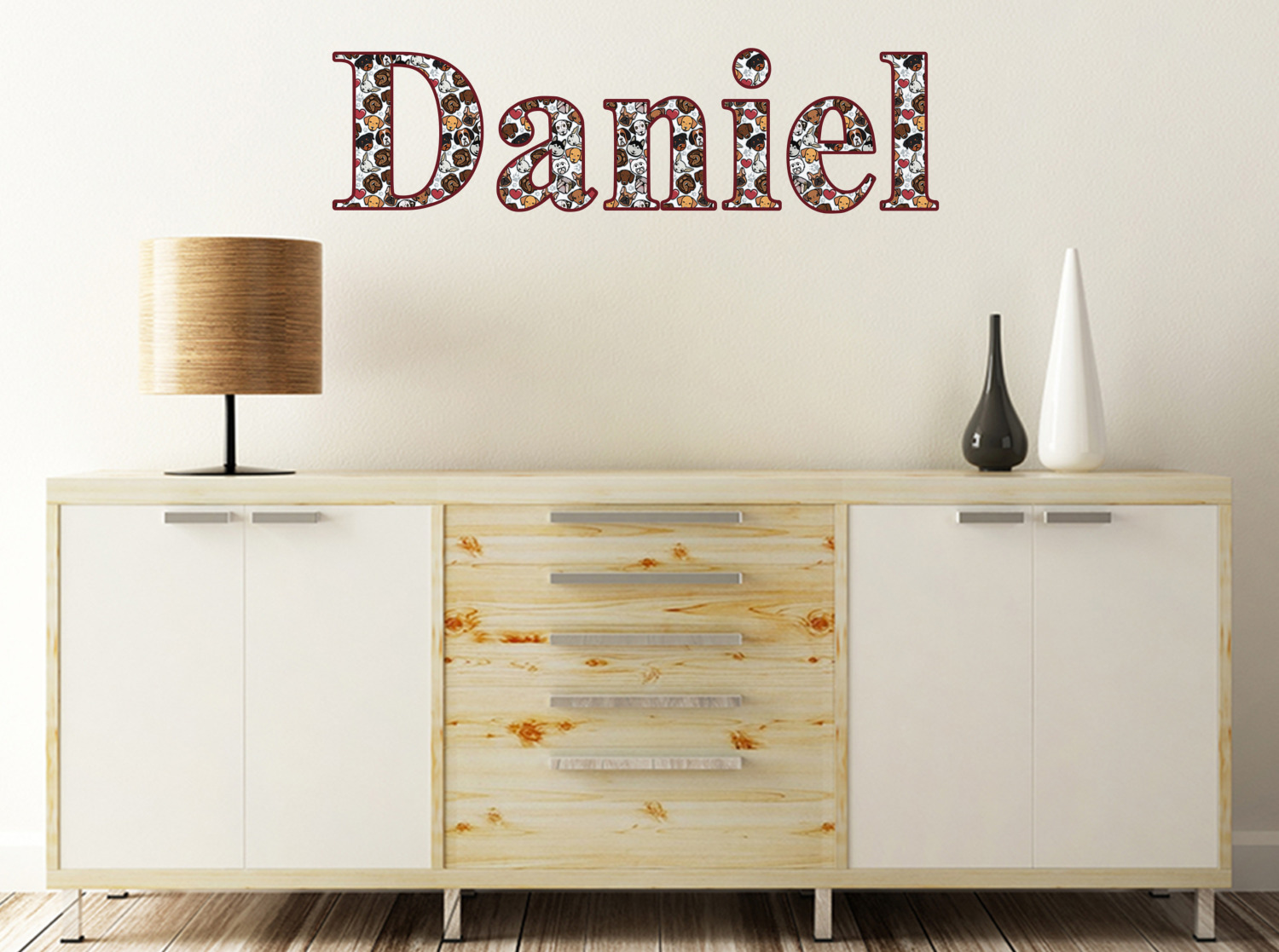 These custom stickers are machine-printed and cut from high quality, white vinyl that comes with a removable adhesive. This adhesive can be detached easily when needed, thus ensuring a simple and clean removal of the name or text. These vinyl stickers provide the best results when applied to wall surfaces that are smooth, slightly textured, or painted. This includes, but is not limited to, semi-gloss and gloss paint finishes. Your wall decor stickers will also cling to a variety of other surfaces, such as metal, painted and wood furniture, doors, windows, mirrors, and glass.