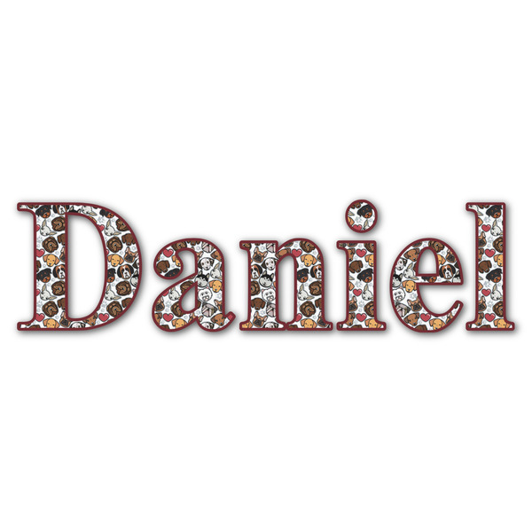 We have all 12 dogs in our design elements library, so you can switch out the dog face that works for you and customize the design to suit your needs.