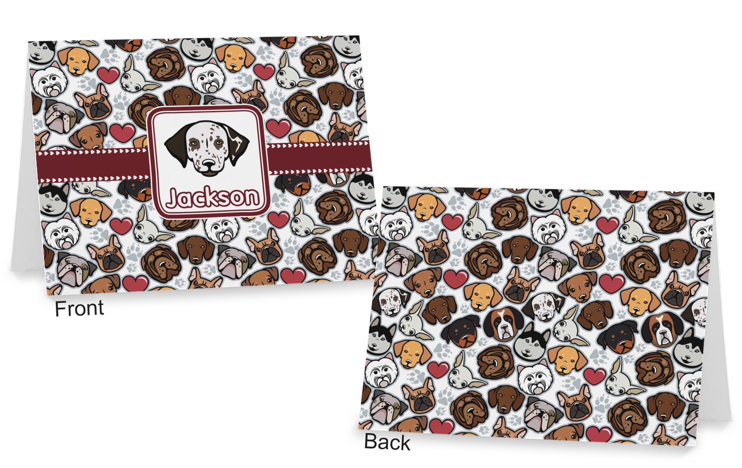 We have all 12 dogs in our design elements library, so you can switch out the dog face that works for you and customize the design to suit your needs.