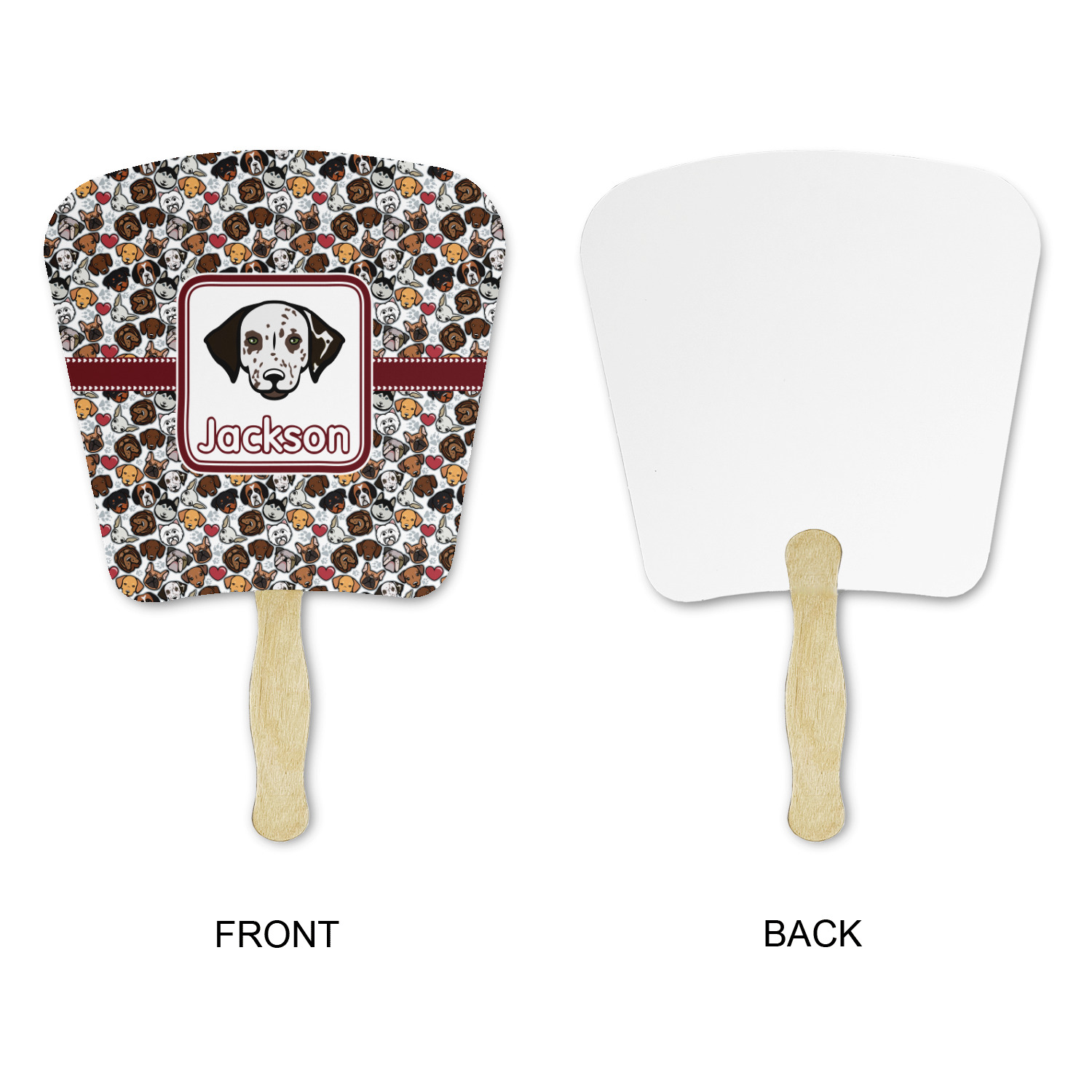 We have all 12 dogs in our design elements library, so you can switch out the dog face that works for you and customize the design to suit your needs.