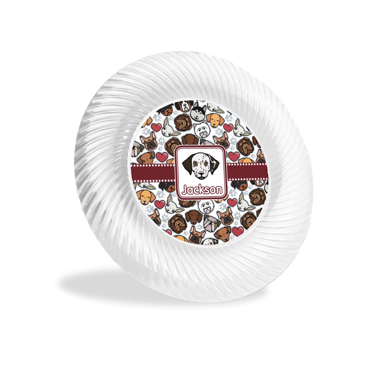 Made from a beautiful clear plastic plate as a base, your design is printed to the underside of the plate. The outside of the plate has a classic swirl texture to it for a high quality look and feel.