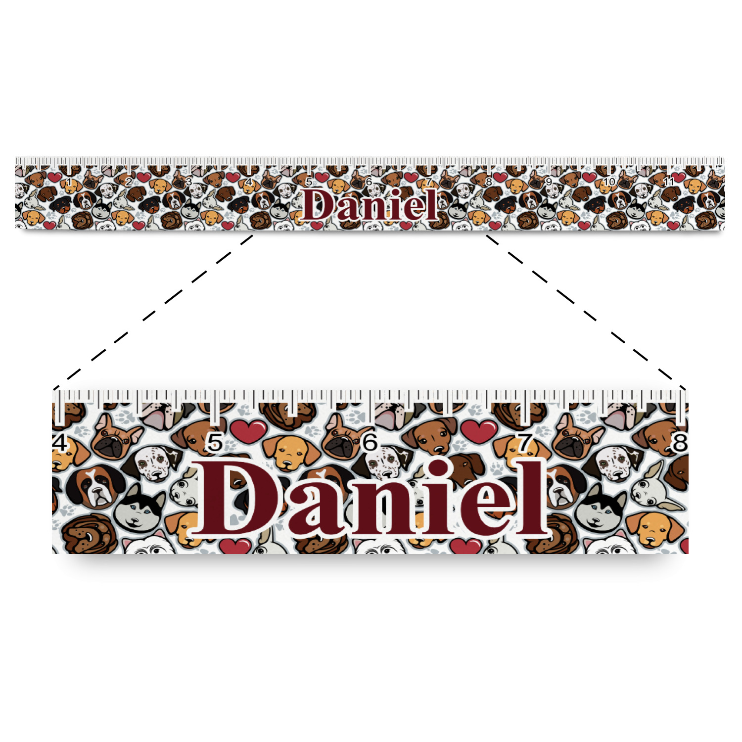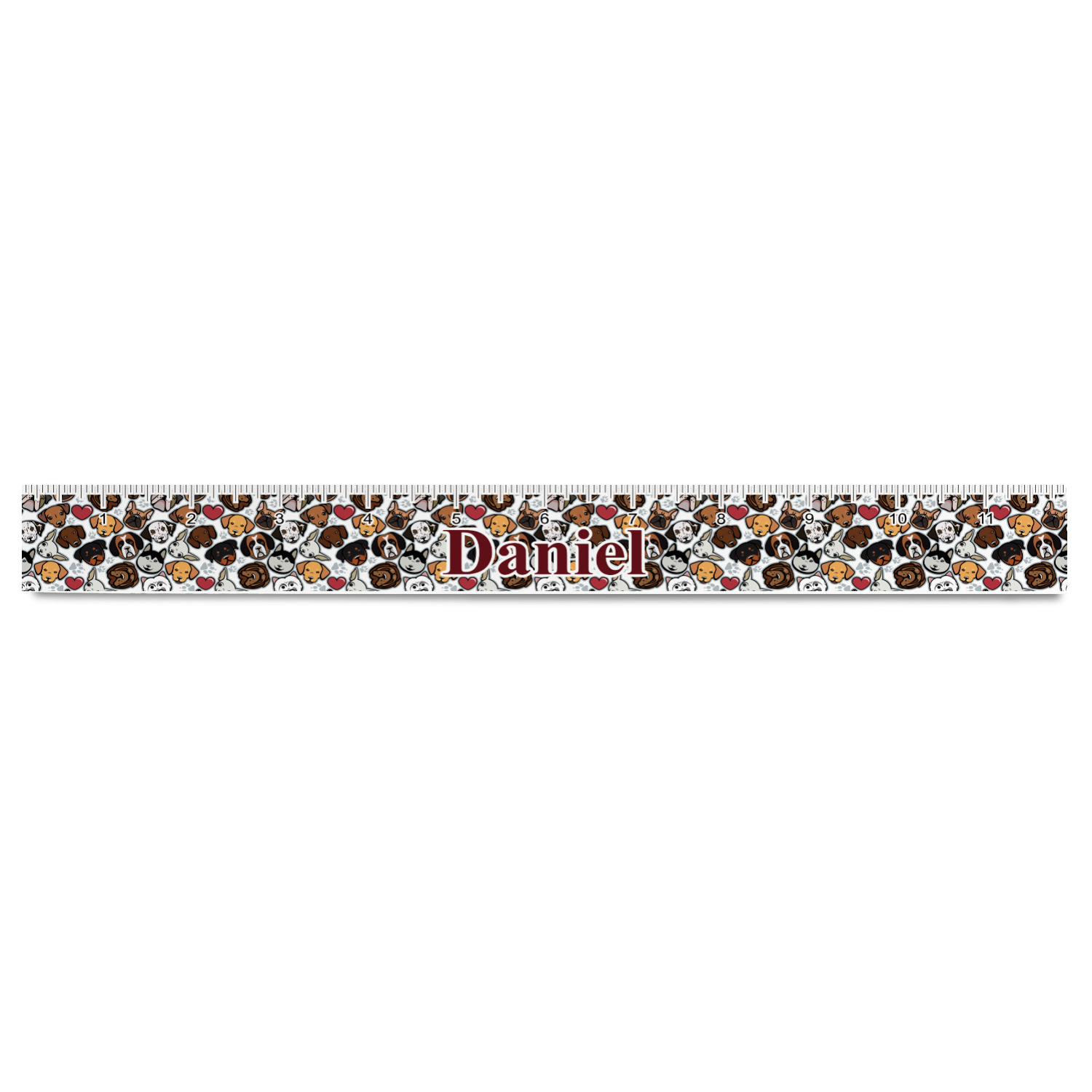 We have all 12 dogs in our design elements library, so you can switch out the dog face that works for you and customize the design to suit your needs.