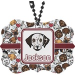 We chose a maroon ribbon with hearts and a square label. We chose the graphic and text for the label contents and featured the Dalmatian / Terrier face along with a name to personalized it.