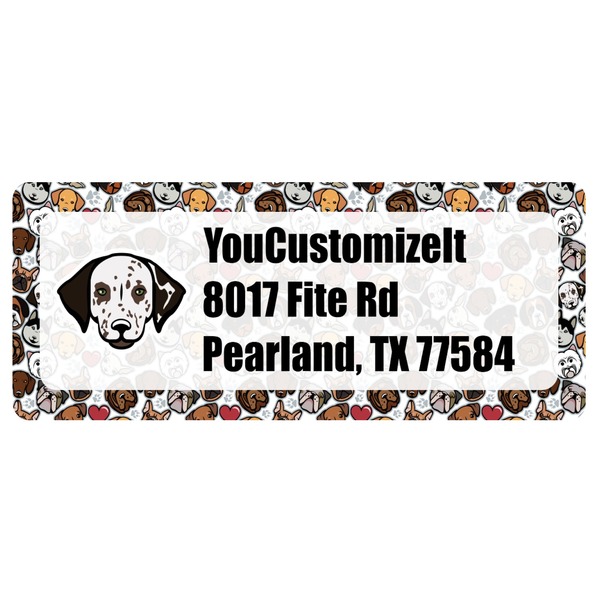 We have all 12 dogs in our design elements library, so you can switch out the dog face that works for you and customize the design to suit your needs.