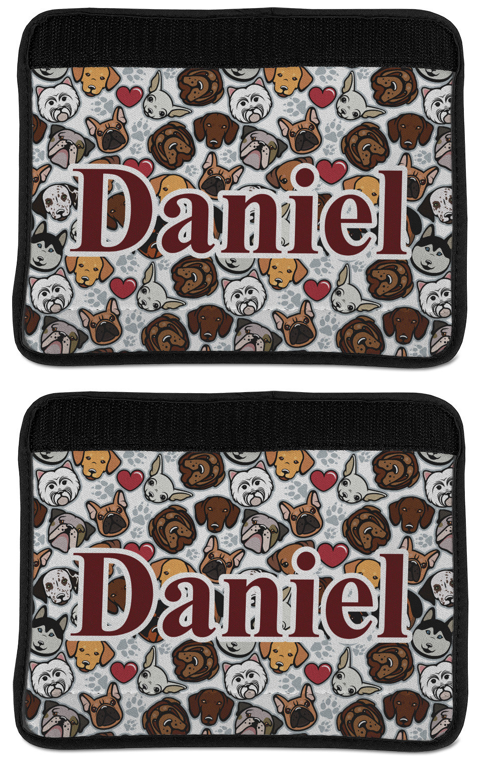Made from neoprene, our seat belt strap covers wrap around the belt itself and have a Velcro tab for easy attachment and closure. The belt's edges are trimmed with a black polyester for a secure finish. Each cover is 9.5 by 7 inches when open and 9.5 by 2.5 inches when closed. We print your personalized design on the face of the seat belt pad.
