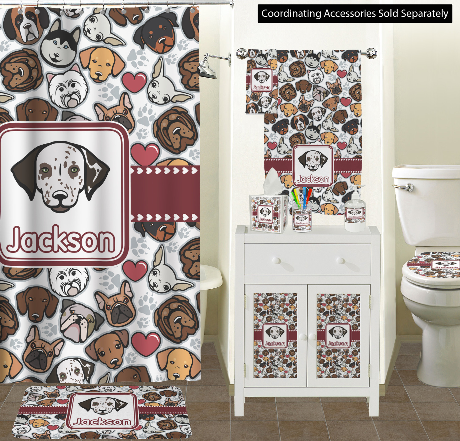 We have all 12 dogs in our design elements library, so you can switch out the dog face that works for you and customize the design to suit your needs.