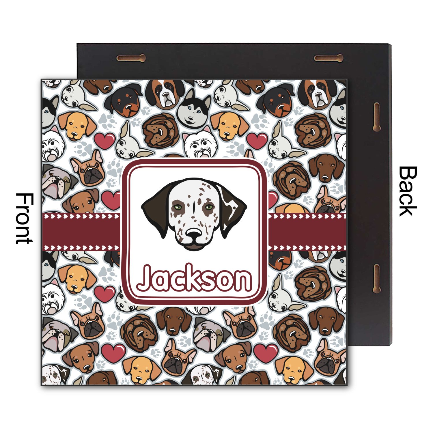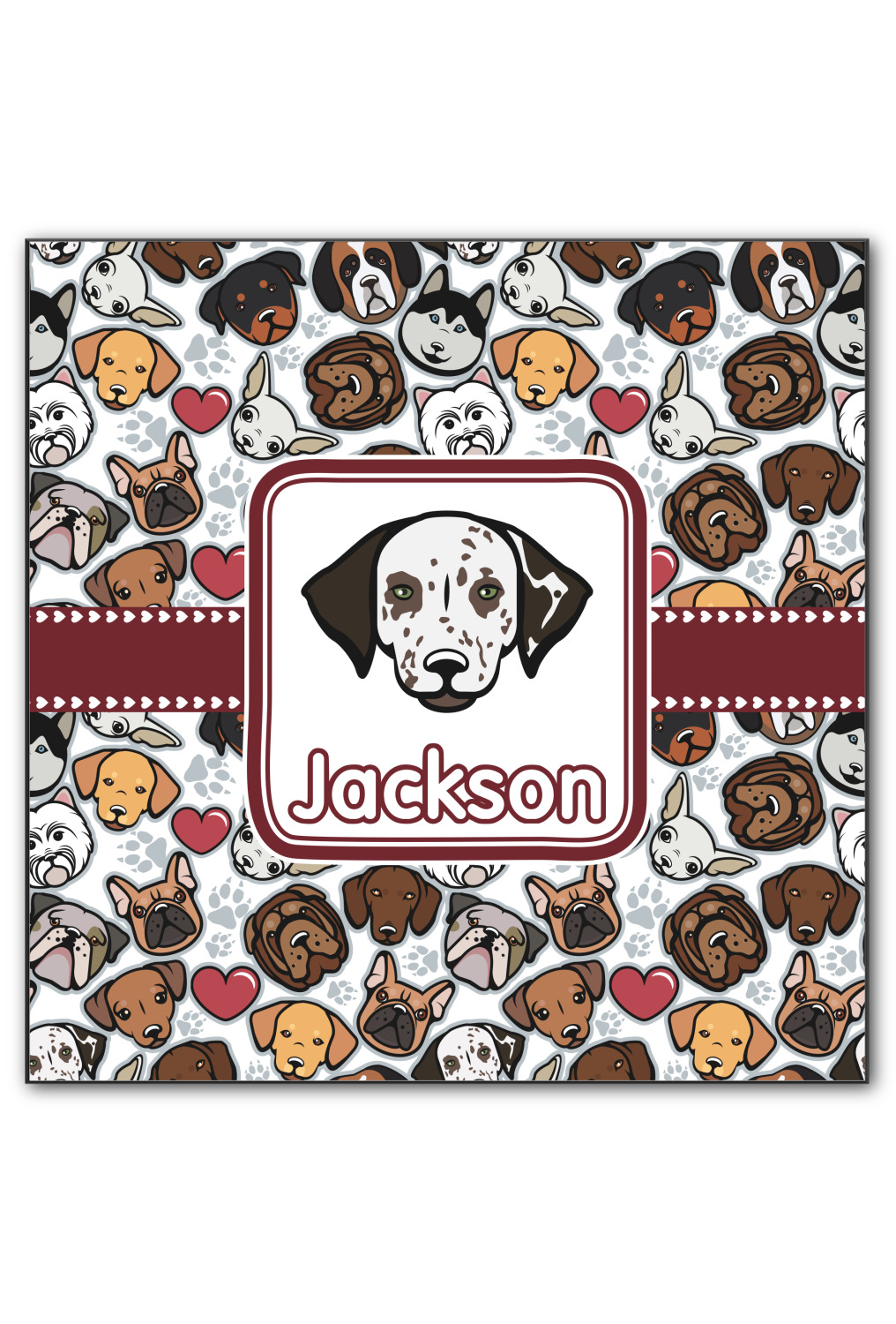 We have all 12 dogs in our design elements library, so you can switch out the dog face that works for you and customize the design to suit your needs.