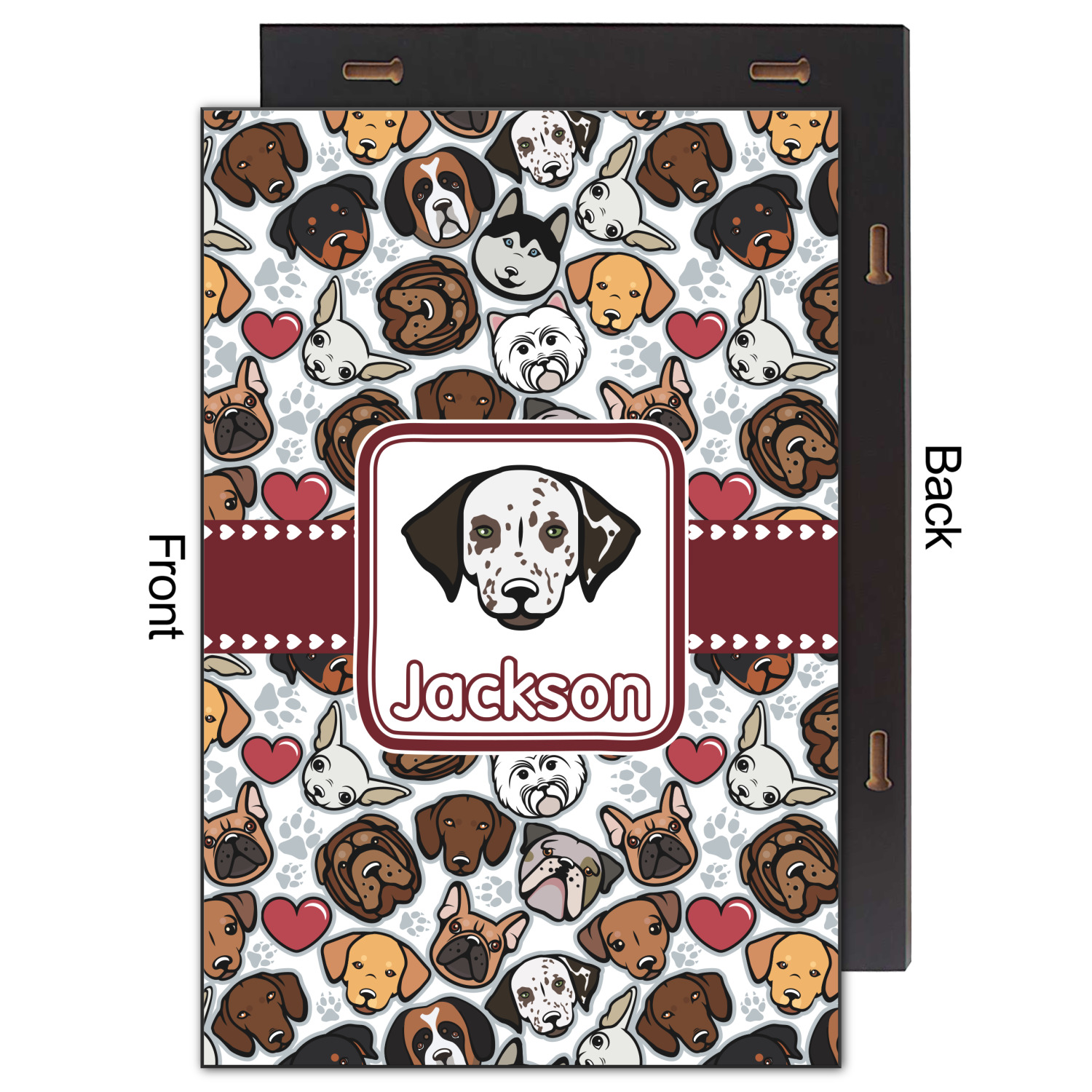 We have all 12 dogs in our design elements library, so you can switch out the dog face that works for you and customize the design to suit your needs.