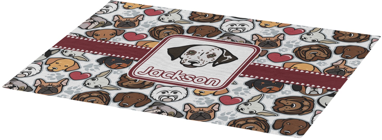 Each of our table mats are a poly twill material with woven burlap detailing. This creates a soft, quality placemat for us to fully print your personalized design across. The woven twill also adds a wrinkle-free surface to set your table! Each customizable placemat is a rectangle shape measuring at approximately 13 x 18 and printed here in the USA.