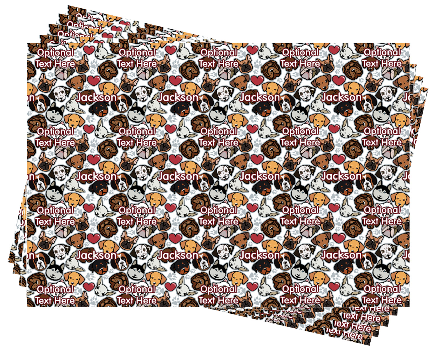 We have all 12 dogs in our design elements library, so you can switch out the dog face that works for you and customize the design to suit your needs.