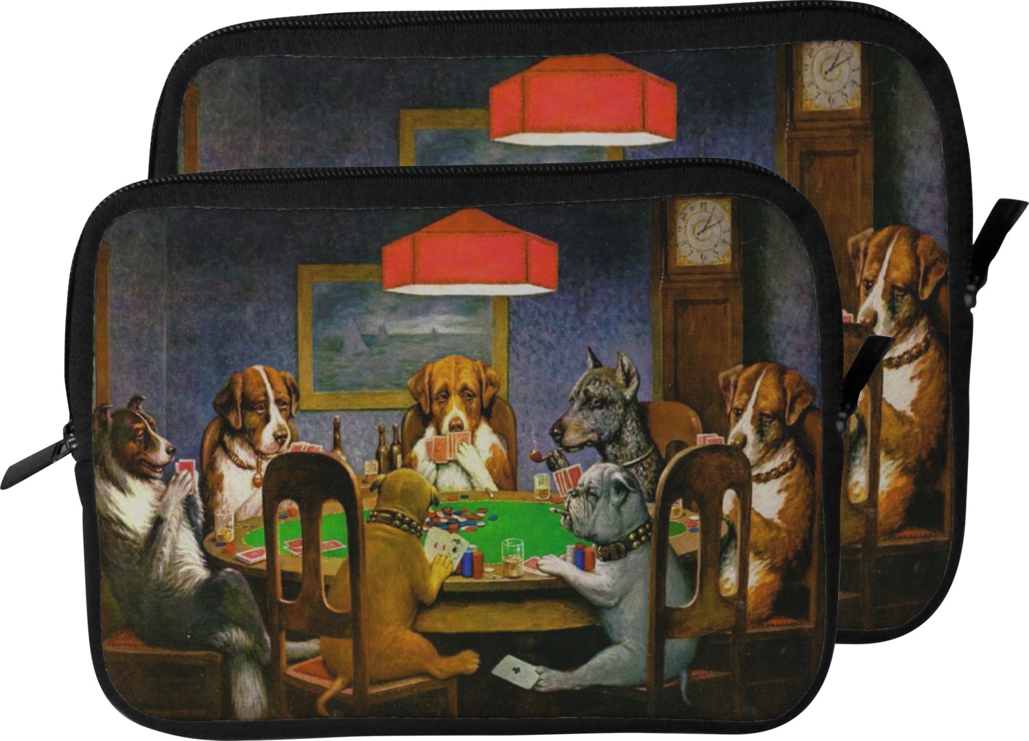 Dogs Playing Poker refers collectively to an 1894 painting, a series of sixteen oil paintings, and a 1910 painting by Cassius Marcellus Coolidge. Brown & Bigelow commissioned the 16 painting series in 1903 to advertise cigars. All eighteen paintings in the series feature personified dogs, but the eleven in which dogs are seated around a card table have become well known in the United States as examples of Kitsch art in home decoration. Source: Wikipedia