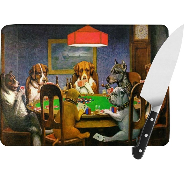 Dogs Playing Poker refers collectively to an 1894 painting, a series of sixteen oil paintings, and a 1910 painting by Cassius Marcellus Coolidge. Brown & Bigelow commissioned the 16 painting series in 1903 to advertise cigars. All eighteen paintings in the series feature personified dogs, but the eleven in which dogs are seated around a card table have become well known in the United States as examples of Kitsch art in home decoration. Source: Wikipedia