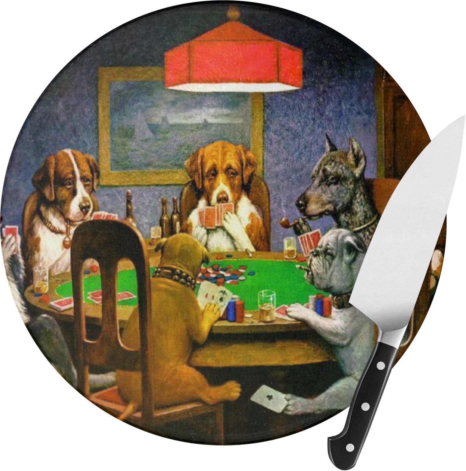 Dogs Playing Poker refers collectively to an 1894 painting, a series of sixteen oil paintings, and a 1910 painting by Cassius Marcellus Coolidge. Brown & Bigelow commissioned the 16 painting series in 1903 to advertise cigars. All eighteen paintings in the series feature personified dogs, but the eleven in which dogs are seated around a card table have become well known in the United States as examples of Kitsch art in home decoration. Source: Wikipedia