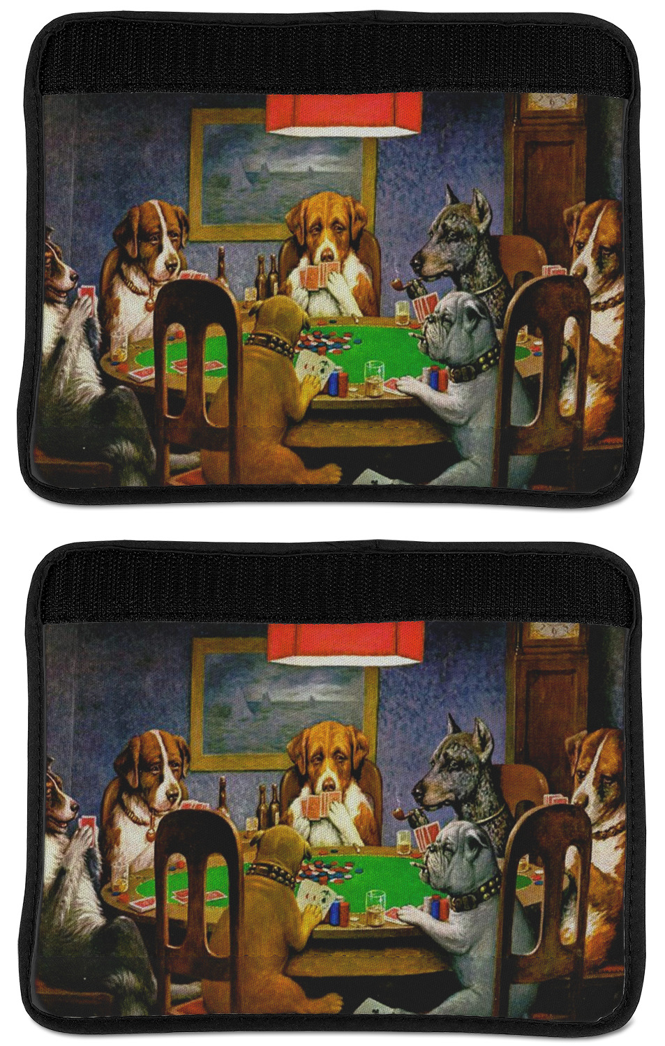 Dogs Playing Poker refers collectively to an 1894 painting, a series of sixteen oil paintings, and a 1910 painting by Cassius Marcellus Coolidge. Brown & Bigelow commissioned the 16 painting series in 1903 to advertise cigars. All eighteen paintings in the series feature personified dogs, but the eleven in which dogs are seated around a card table have become well known in the United States as examples of Kitsch art in home decoration. Source: Wikipedia