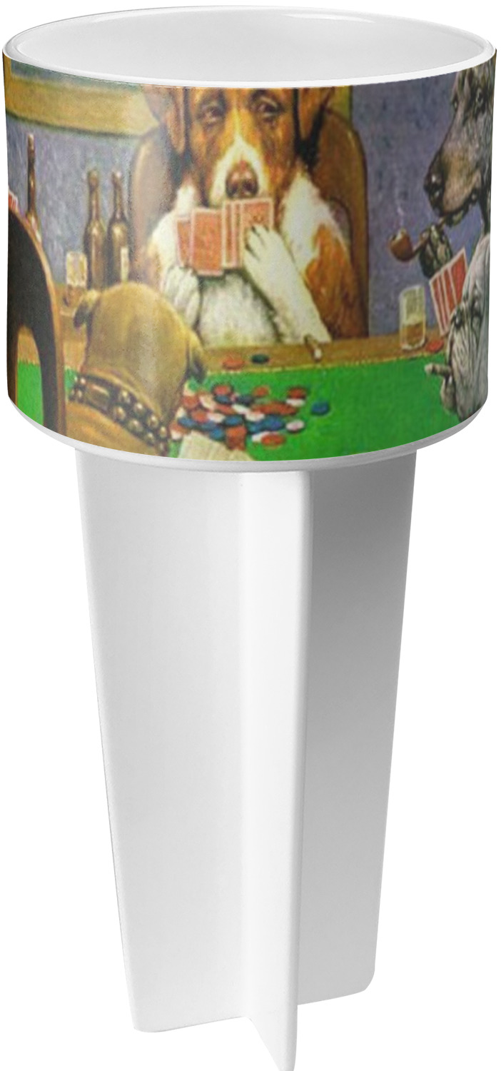 This cup holder has a large stake at its bottom that anchors it to the sand or ground below, while the cup holder rests above the stake. The entire drink holder is made of durable plastic and displays your customization around the cup holder portion. We sell these personalized beach spikers in two different colors: black and white.