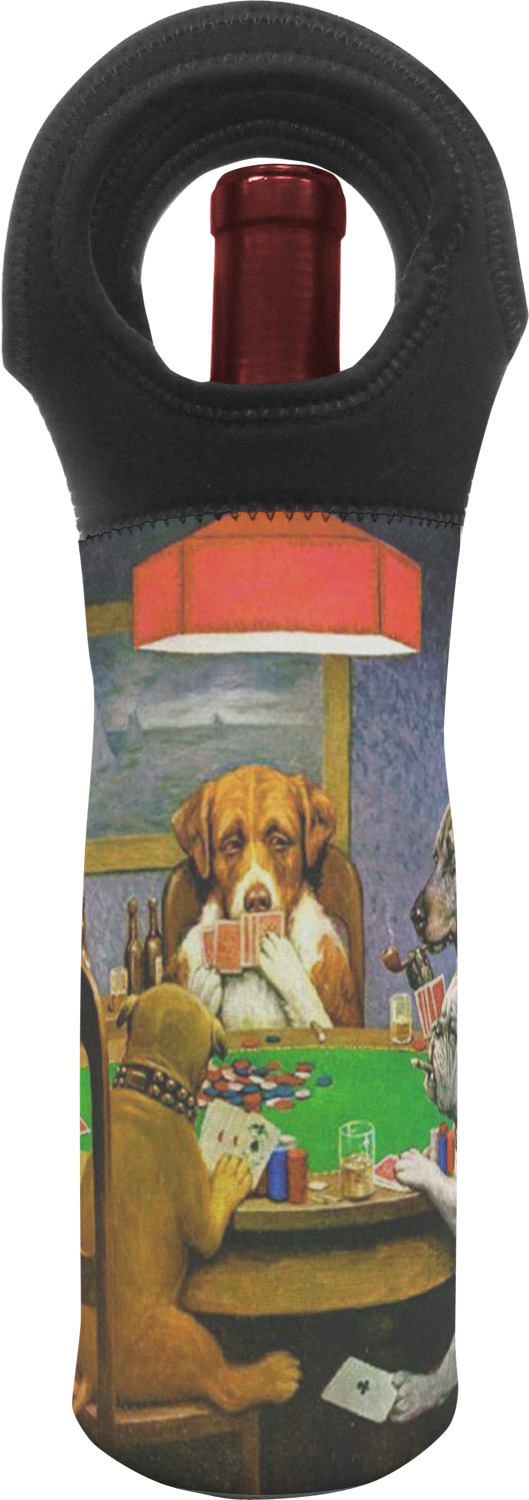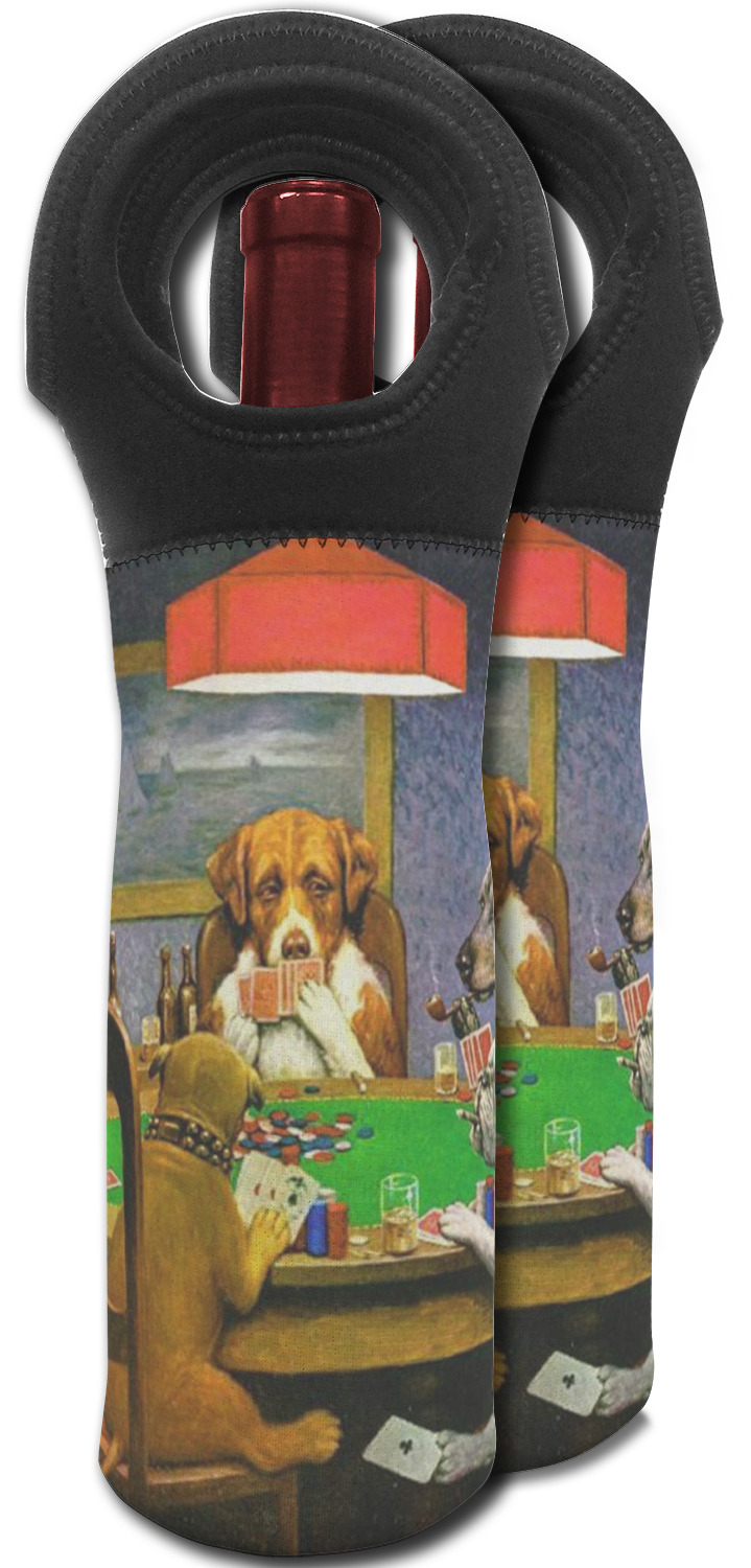 Dogs Playing Poker refers collectively to an 1894 painting, a series of sixteen oil paintings, and a 1910 painting by Cassius Marcellus Coolidge. Brown & Bigelow commissioned the 16 painting series in 1903 to advertise cigars. All eighteen paintings in the series feature personified dogs, but the eleven in which dogs are seated around a card table have become well known in the United States as examples of Kitsch art in home decoration. Source: Wikipedia