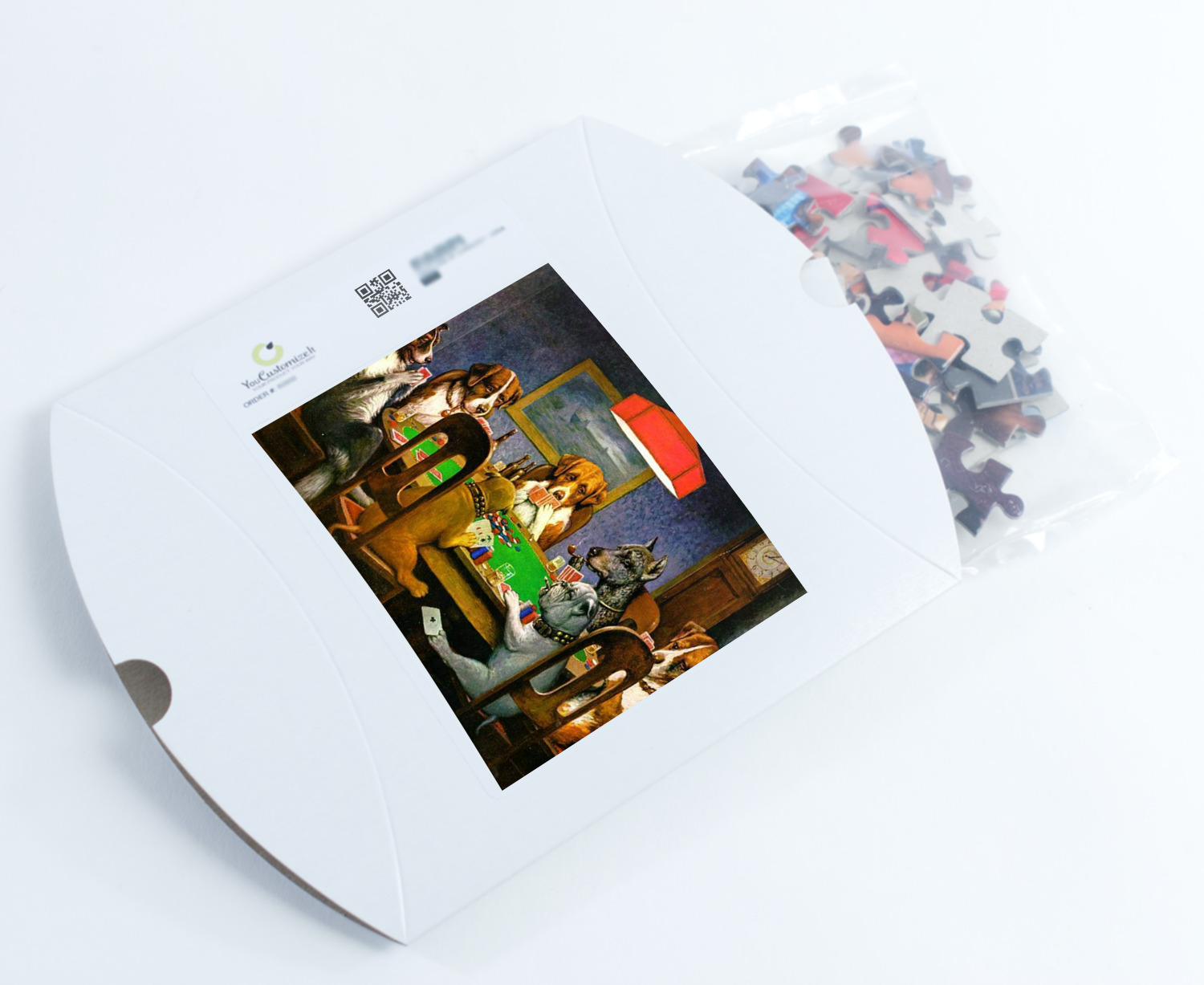 We print our puzzles on thick white chipboard in vibrant colors, then laminate the chipboard and die cut your puzzle. Your jigsaw puzzle is shipped to you in a box with the image of the puzzle on the box.