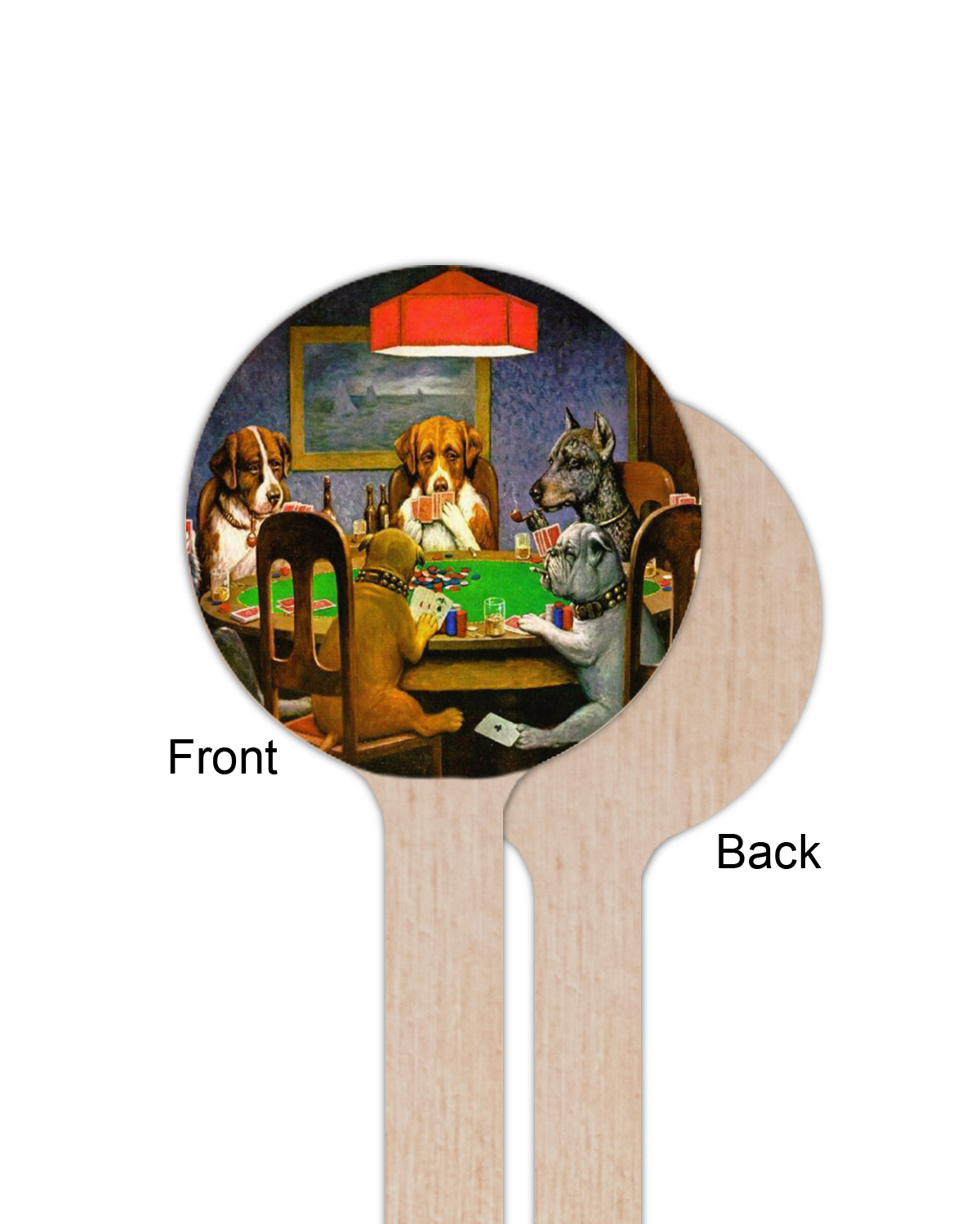 Dogs Playing Poker refers collectively to an 1894 painting, a series of sixteen oil paintings, and a 1910 painting by Cassius Marcellus Coolidge. Brown & Bigelow commissioned the 16 painting series in 1903 to advertise cigars. All eighteen paintings in the series feature personified dogs, but the eleven in which dogs are seated around a card table have become well known in the United States as examples of Kitsch art in home decoration. Source: Wikipedia