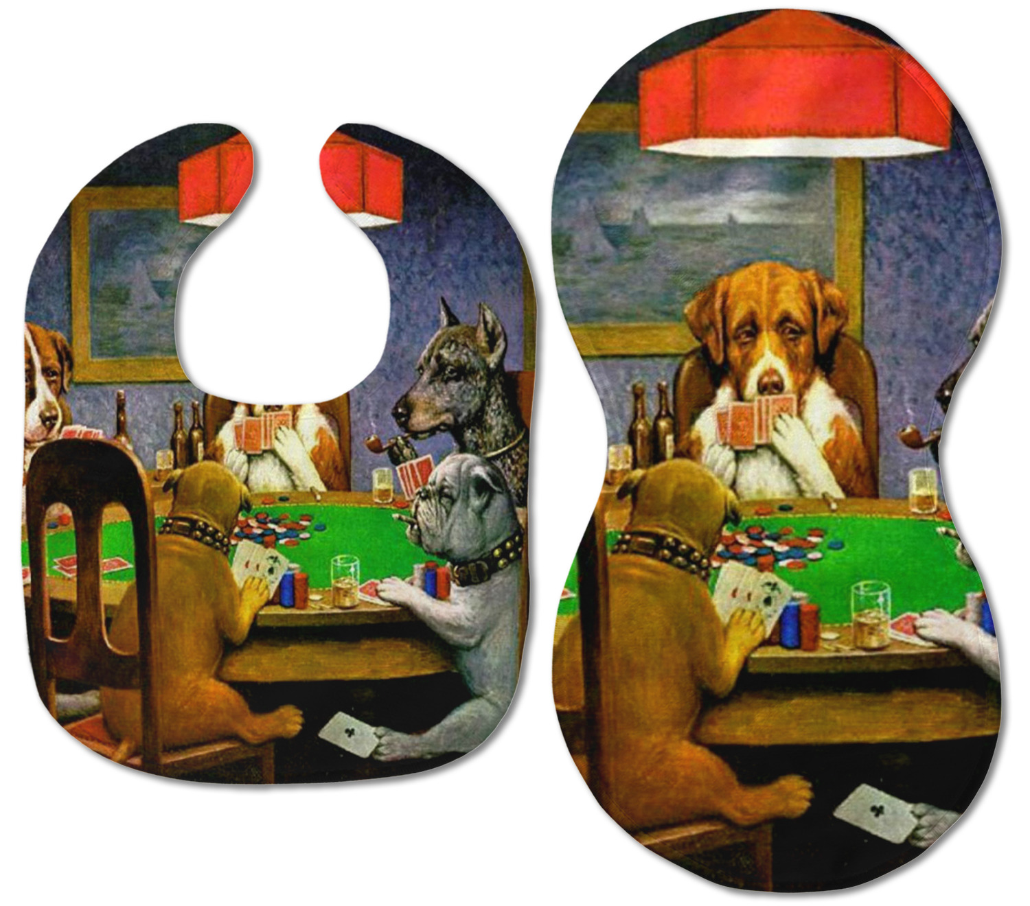 Dogs Playing Poker refers collectively to an 1894 painting, a series of sixteen oil paintings, and a 1910 painting by Cassius Marcellus Coolidge. Brown & Bigelow commissioned the 16 painting series in 1903 to advertise cigars. All eighteen paintings in the series feature personified dogs, but the eleven in which dogs are seated around a card table have become well known in the United States as examples of Kitsch art in home decoration. Source: Wikipedia
