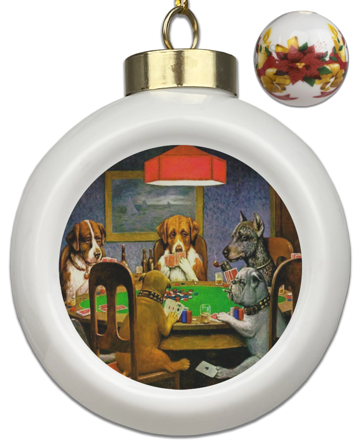 Dogs Playing Poker refers collectively to an 1894 painting, a series of sixteen oil paintings, and a 1910 painting by Cassius Marcellus Coolidge. Brown & Bigelow commissioned the 16 painting series in 1903 to advertise cigars. All eighteen paintings in the series feature personified dogs, but the eleven in which dogs are seated around a card table have become well known in the United States as examples of Kitsch art in home decoration. Source: Wikipedia