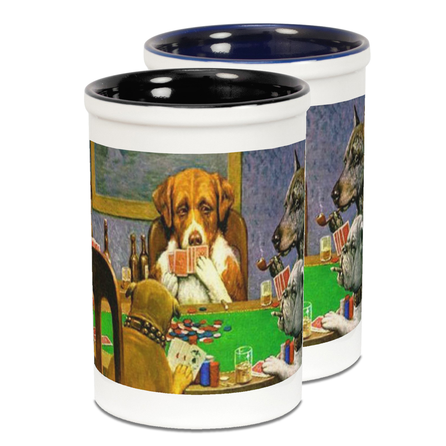 Dogs Playing Poker refers collectively to an 1894 painting, a series of sixteen oil paintings, and a 1910 painting by Cassius Marcellus Coolidge. Brown & Bigelow commissioned the 16 painting series in 1903 to advertise cigars. All eighteen paintings in the series feature personified dogs, but the eleven in which dogs are seated around a card table have become well known in the United States as examples of Kitsch art in home decoration. Source: Wikipedia