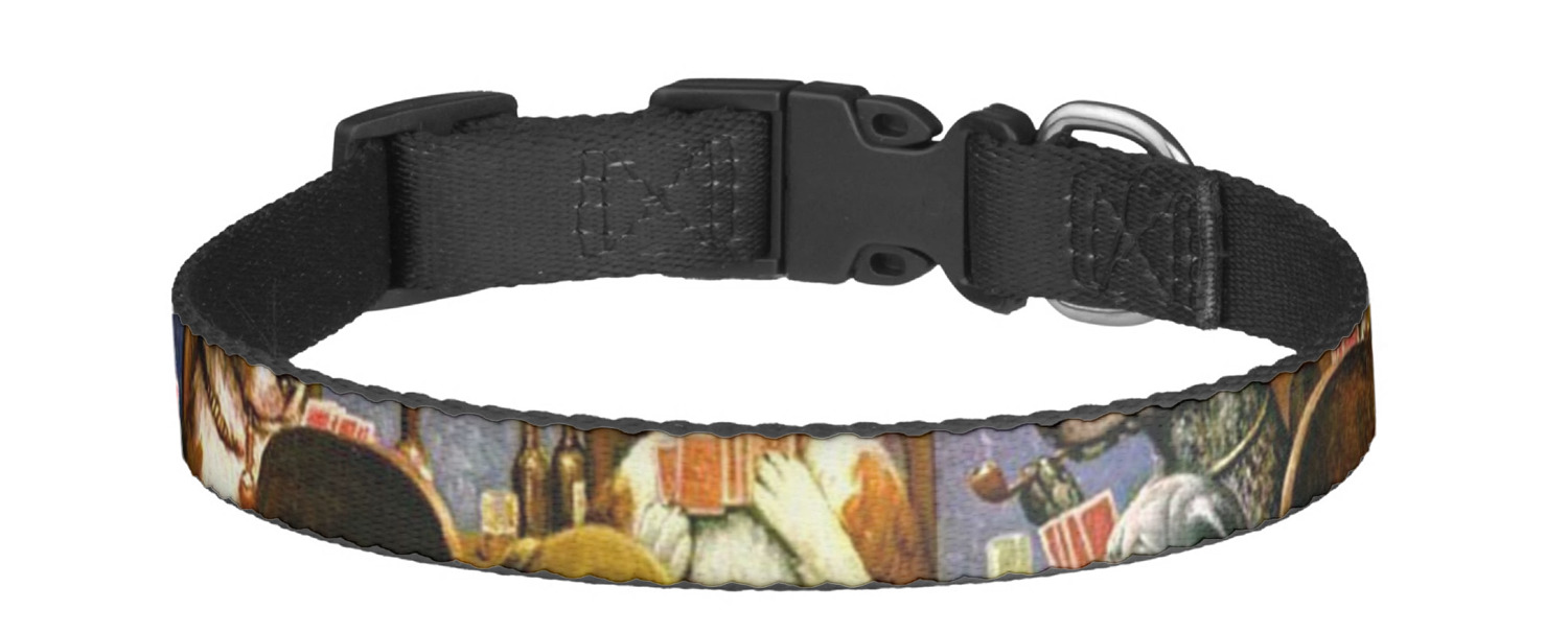 Dogs Playing Poker refers collectively to an 1894 painting, a series of sixteen oil paintings, and a 1910 painting by Cassius Marcellus Coolidge. Brown & Bigelow commissioned the 16 painting series in 1903 to advertise cigars. All eighteen paintings in the series feature personified dogs, but the eleven in which dogs are seated around a card table have become well known in the United States as examples of Kitsch art in home decoration. Source: Wikipedia