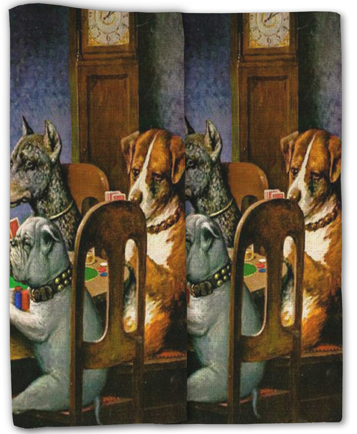 Dogs Playing Poker refers collectively to an 1894 painting, a series of sixteen oil paintings, and a 1910 painting by Cassius Marcellus Coolidge. Brown & Bigelow commissioned the 16 painting series in 1903 to advertise cigars. All eighteen paintings in the series feature personified dogs, but the eleven in which dogs are seated around a card table have become well known in the United States as examples of Kitsch art in home decoration. Source: Wikipedia