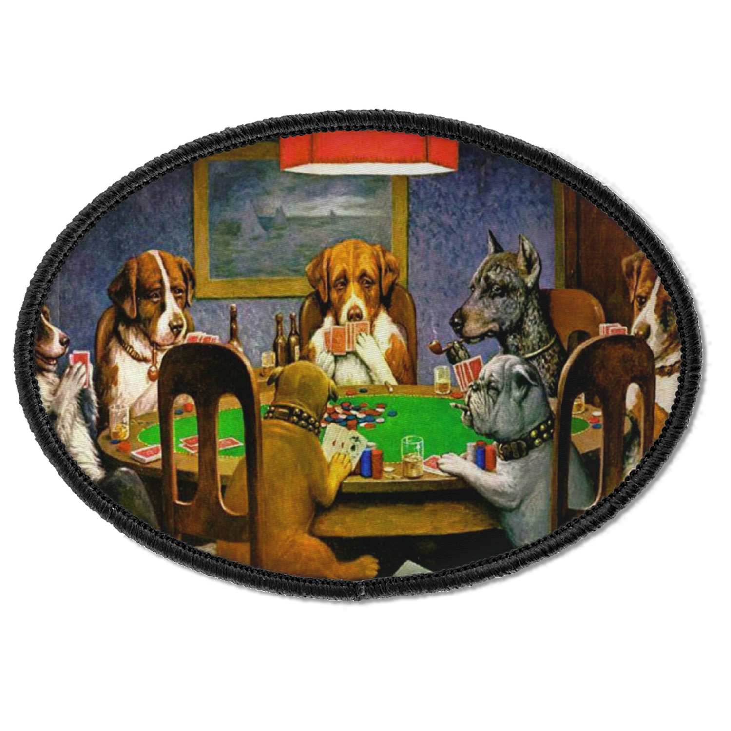 Dogs Playing Poker refers collectively to an 1894 painting, a series of sixteen oil paintings, and a 1910 painting by Cassius Marcellus Coolidge. Brown & Bigelow commissioned the 16 painting series in 1903 to advertise cigars. All eighteen paintings in the series feature personified dogs, but the eleven in which dogs are seated around a card table have become well known in the United States as examples of Kitsch art in home decoration. Source: Wikipedia