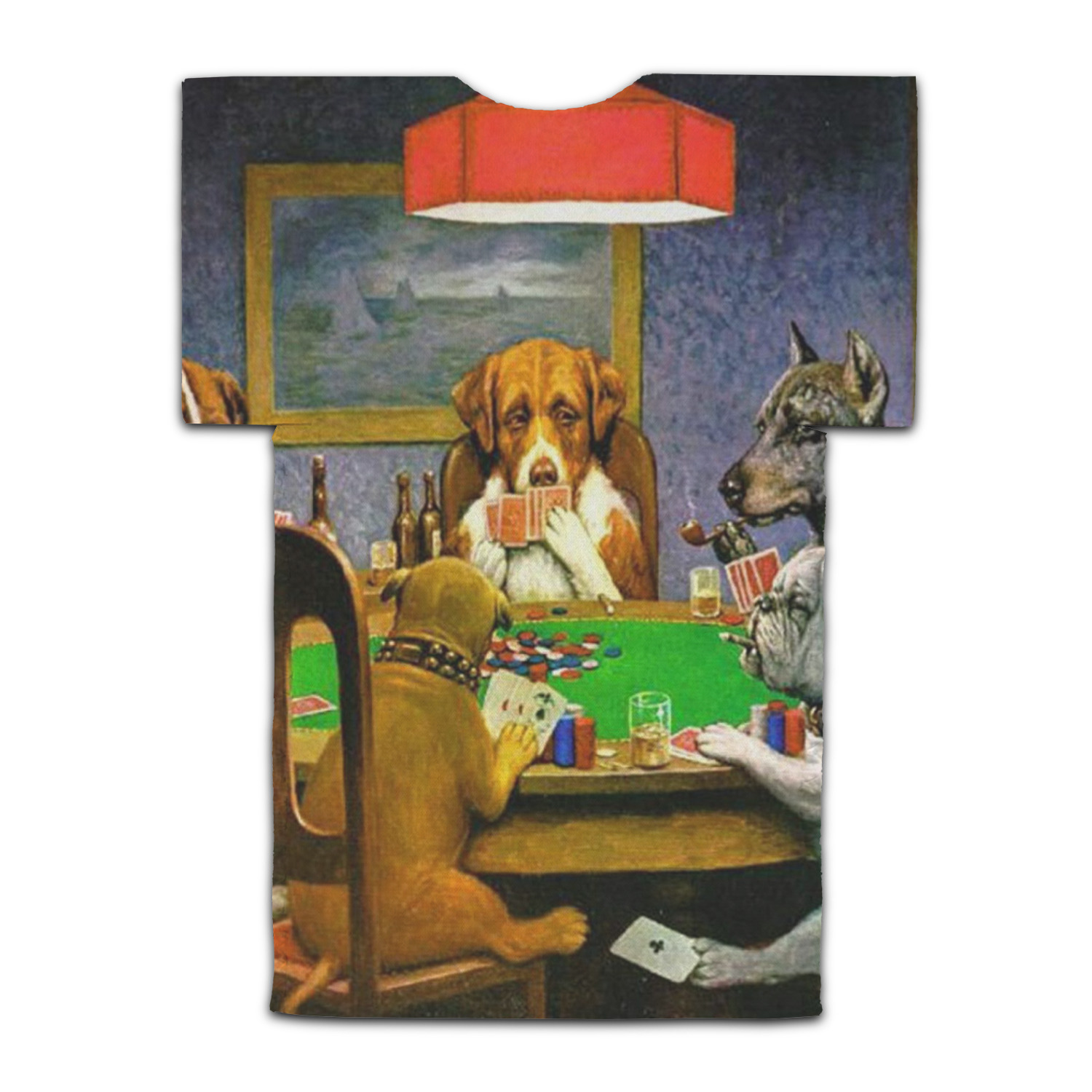 Dogs Playing Poker refers collectively to an 1894 painting, a series of sixteen oil paintings, and a 1910 painting by Cassius Marcellus Coolidge. Brown & Bigelow commissioned the 16 painting series in 1903 to advertise cigars. All eighteen paintings in the series feature personified dogs, but the eleven in which dogs are seated around a card table have become well known in the United States as examples of Kitsch art in home decoration. Source: Wikipedia