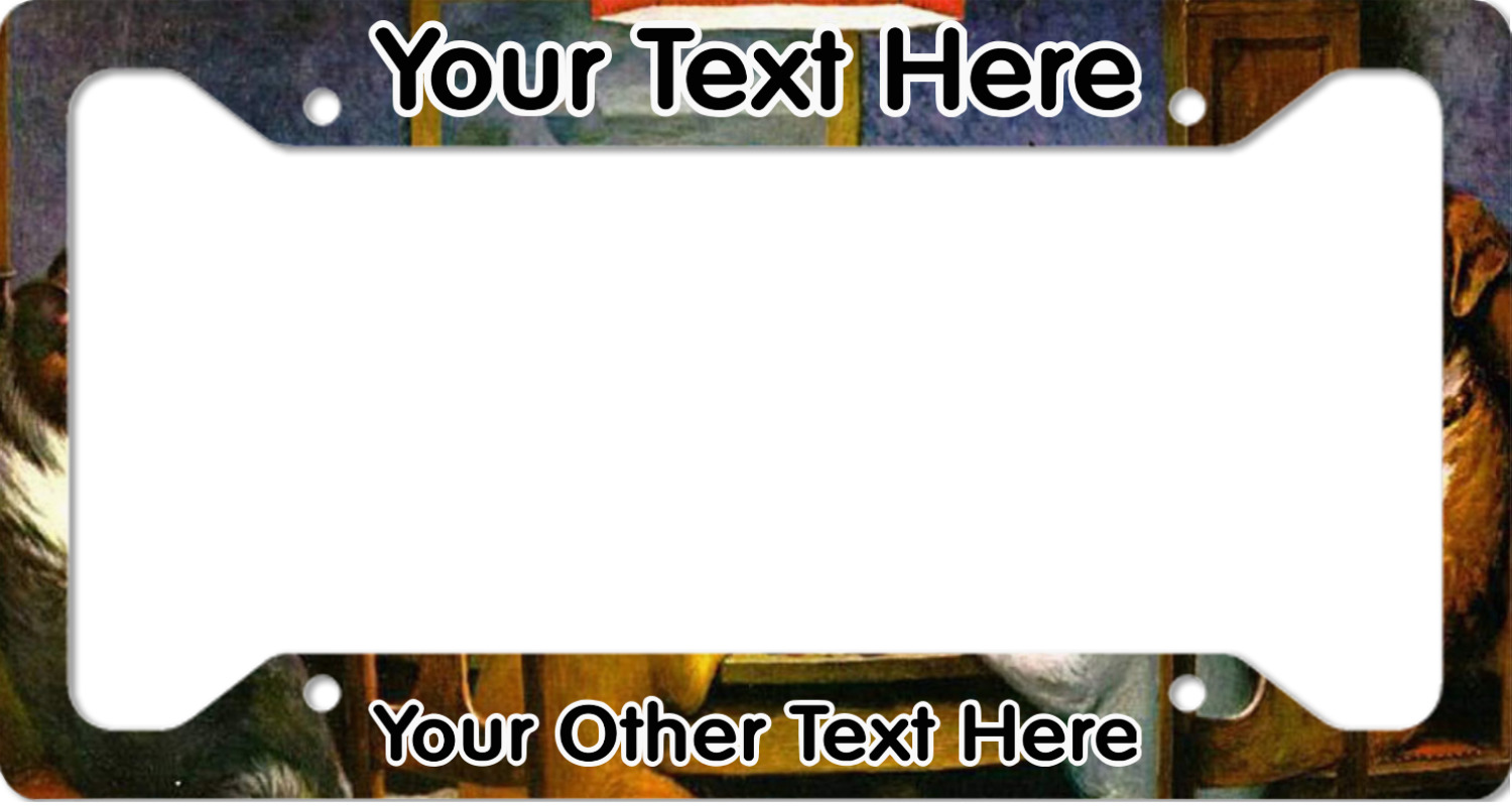 Dogs Playing Poker refers collectively to an 1894 painting, a series of sixteen oil paintings, and a 1910 painting by Cassius Marcellus Coolidge. Brown & Bigelow commissioned the 16 painting series in 1903 to advertise cigars. All eighteen paintings in the series feature personified dogs, but the eleven in which dogs are seated around a card table have become well known in the United States as examples of Kitsch art in home decoration. Source: Wikipedia