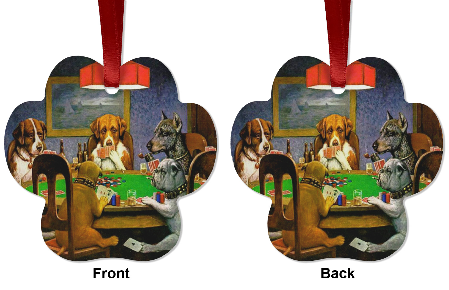 Dogs Playing Poker refers collectively to an 1894 painting, a series of sixteen oil paintings, and a 1910 painting by Cassius Marcellus Coolidge. Brown & Bigelow commissioned the 16 painting series in 1903 to advertise cigars. All eighteen paintings in the series feature personified dogs, but the eleven in which dogs are seated around a card table have become well known in the United States as examples of Kitsch art in home decoration. Source: Wikipedia