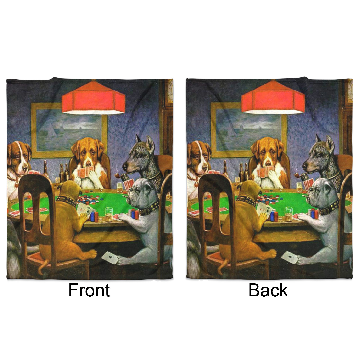 Dogs Playing Poker refers collectively to an 1894 painting, a series of sixteen oil paintings, and a 1910 painting by Cassius Marcellus Coolidge. Brown & Bigelow commissioned the 16 painting series in 1903 to advertise cigars. All eighteen paintings in the series feature personified dogs, but the eleven in which dogs are seated around a card table have become well known in the United States as examples of Kitsch art in home decoration. Source: Wikipedia