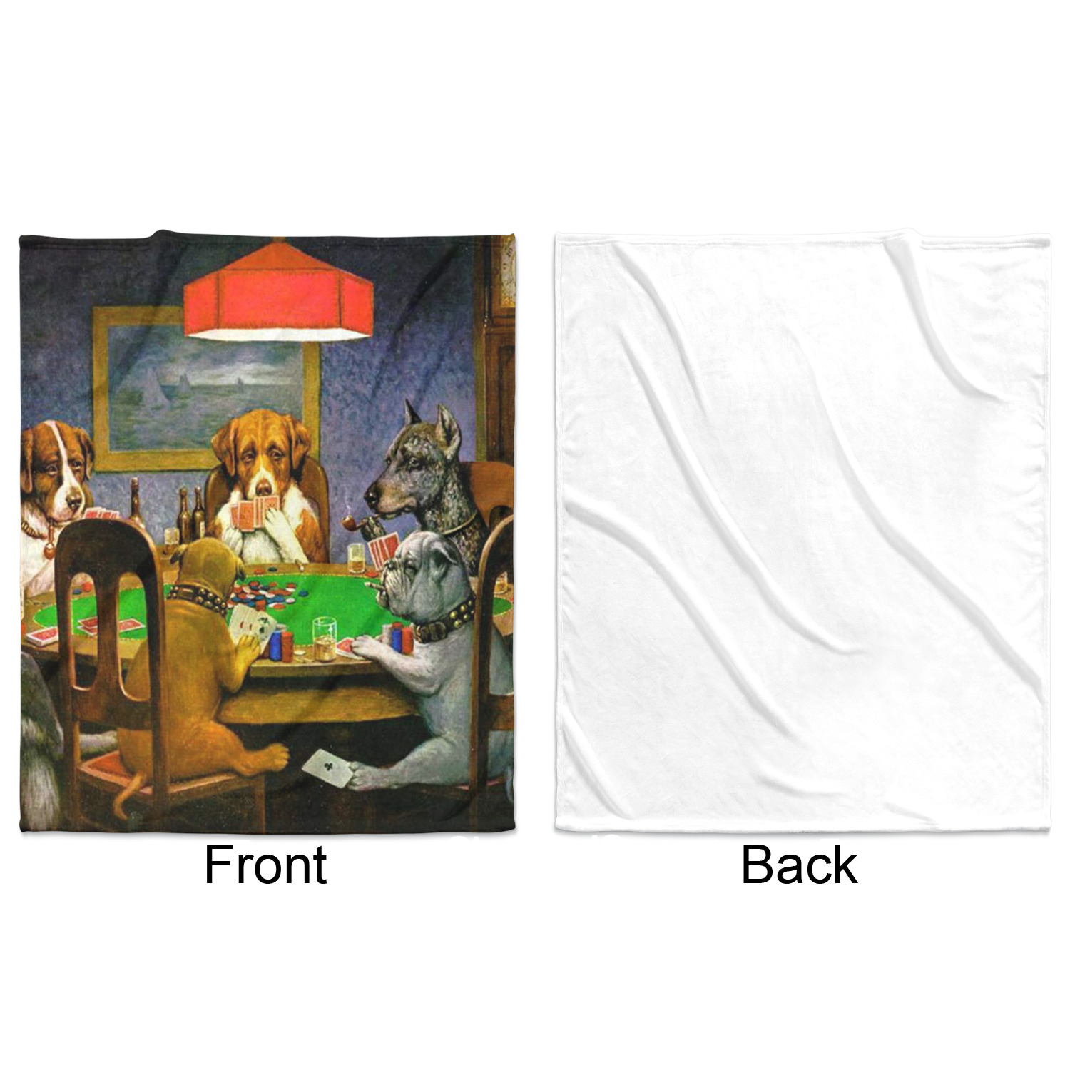 Dogs Playing Poker refers collectively to an 1894 painting, a series of sixteen oil paintings, and a 1910 painting by Cassius Marcellus Coolidge. Brown & Bigelow commissioned the 16 painting series in 1903 to advertise cigars. All eighteen paintings in the series feature personified dogs, but the eleven in which dogs are seated around a card table have become well known in the United States as examples of Kitsch art in home decoration. Source: Wikipedia
