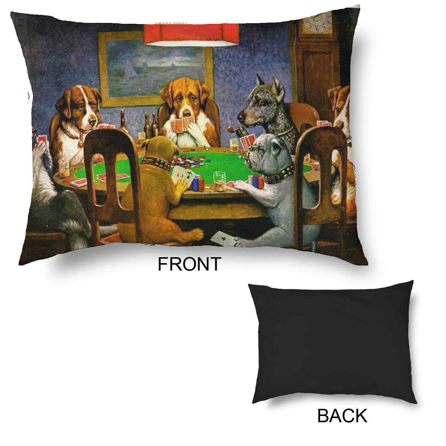 Dogs Playing Poker refers collectively to an 1894 painting, a series of sixteen oil paintings, and a 1910 painting by Cassius Marcellus Coolidge. Brown & Bigelow commissioned the 16 painting series in 1903 to advertise cigars. All eighteen paintings in the series feature personified dogs, but the eleven in which dogs are seated around a card table have become well known in the United States as examples of Kitsch art in home decoration. Source: Wikipedia