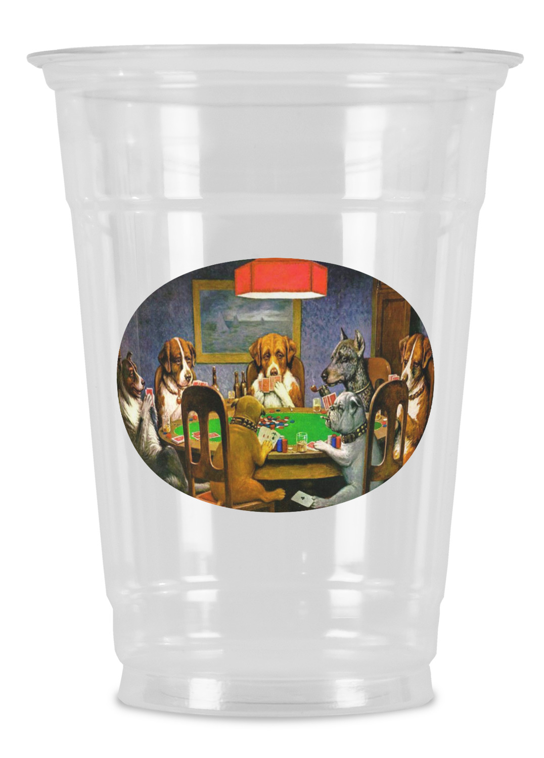 Dogs Playing Poker refers collectively to an 1894 painting, a series of sixteen oil paintings, and a 1910 painting by Cassius Marcellus Coolidge. Brown & Bigelow commissioned the 16 painting series in 1903 to advertise cigars. All eighteen paintings in the series feature personified dogs, but the eleven in which dogs are seated around a card table have become well known in the United States as examples of Kitsch art in home decoration. Source: Wikipedia